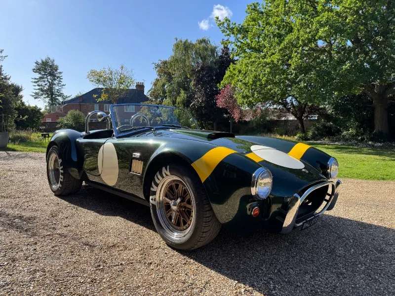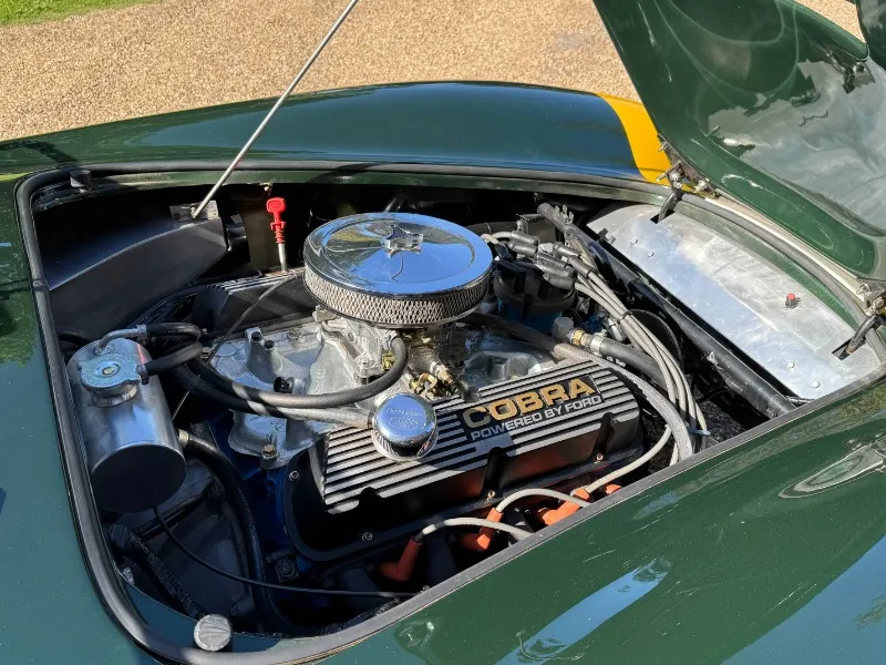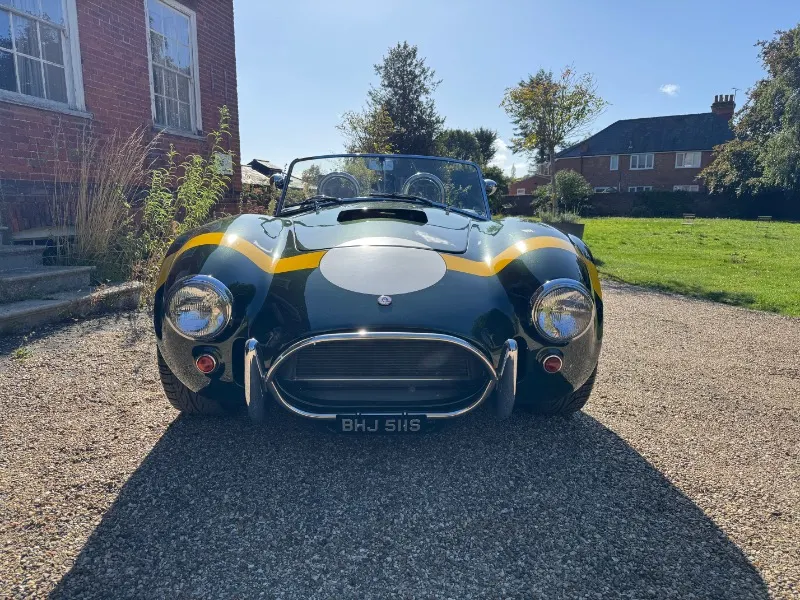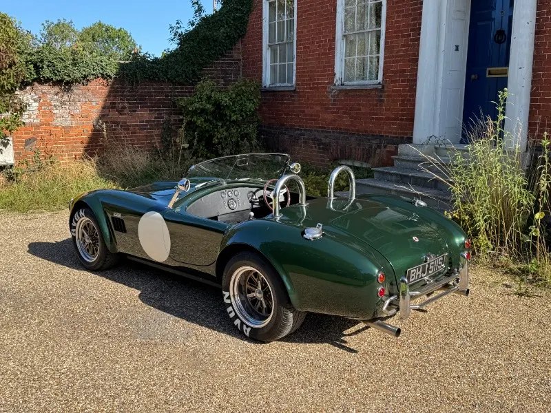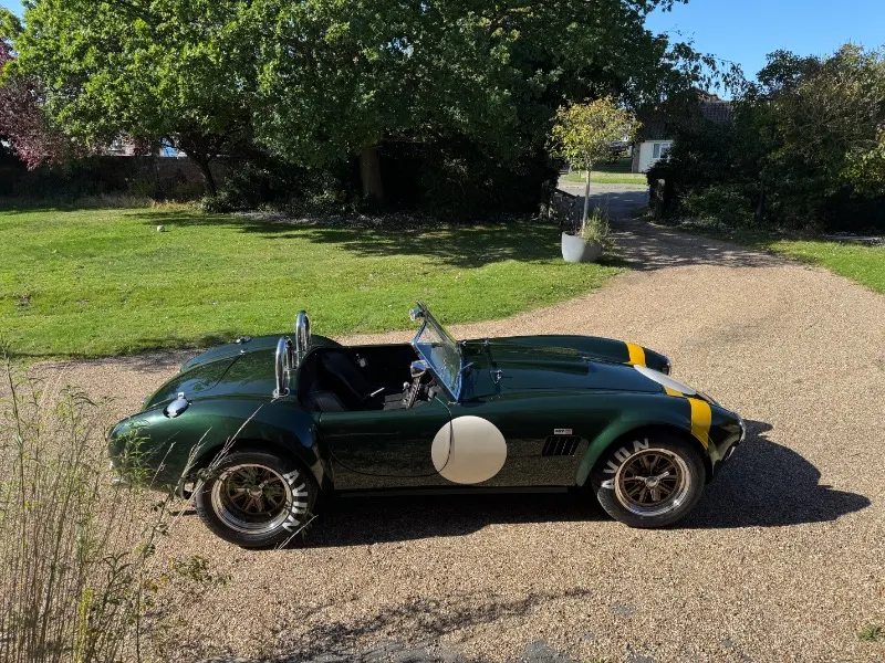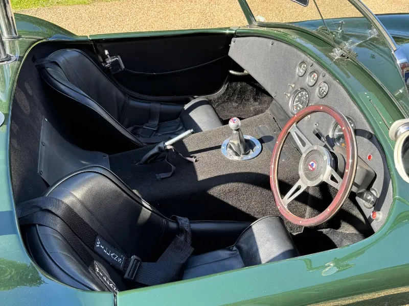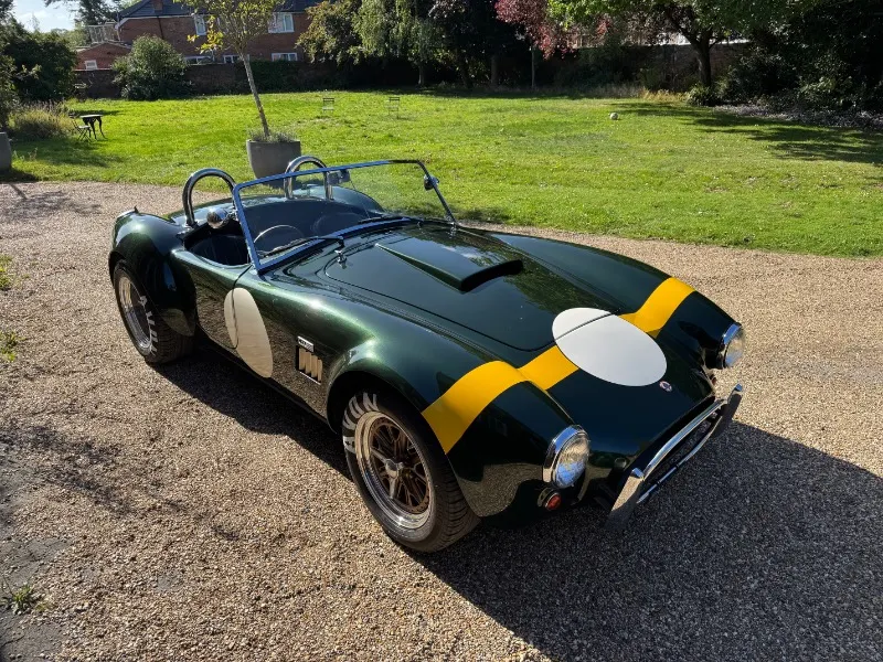 RAM SC COBRA “Powered by Ford V8” This beautiful RAM Cobra was correctly registered 10/11/1999 . Its one owner from new has only covered 2793 recorded miles . Finished in classic metallic British racing green coachwork with removable yellow identity stipe and white roundels . Detailed with chrome bumpers , Cobra badges, Stainless steel wipers, Stainless steel side vents, Bullet mirrors, Twin single hoop roll bars, Twin Large Aston polished aluminium fuel fillers . 16” Image Hallibrand alloys with bronze inserts , Faux aluminium spinners, Pirelli P6000 tyres . Classic black interior with black carpets, Original style Flat Dashboard with classic smiths instruments, Black Willans harness seat belts, Cobra gear knob, Wood rim steering wheel, Heater ! . Battery cut off . Powered by a FORD 351ci V8 engine with a Chrome air filter, 4 Barrel Edelbrock carburettor, “Cobra powered by Ford” Rocker covers , Aluminium radiator, Aluminium header tank, Polished aluminium bulkhead. Underslung exhaust system , 4 Speed manual gear box . Superb Reynard backbone chassis . (Ram were authenticated by Shelby) Jaguar brakes and differential . Coil over shock adjustable suspension . History file includes original build manual , Mots , Copy of SVA/IVA Certificate etc A superb classic Cobra with a FORD V8 . £38500
