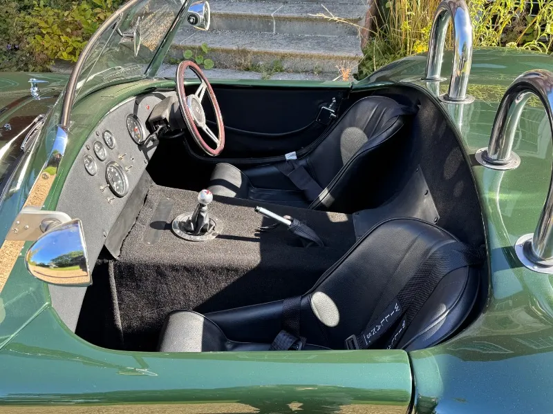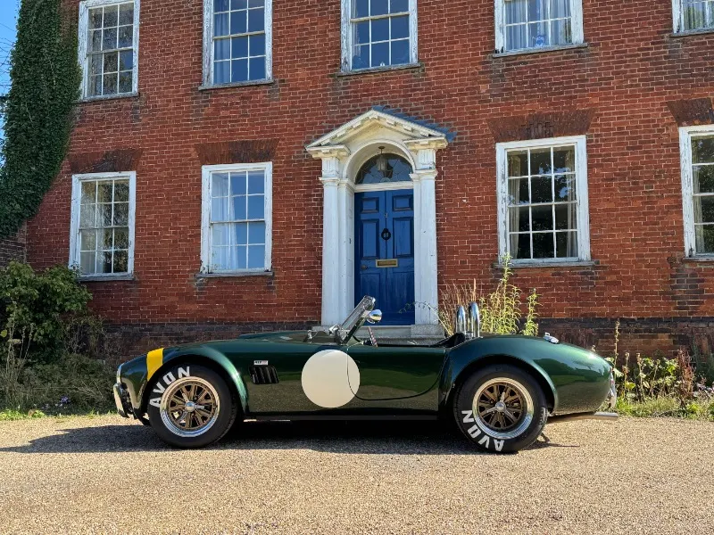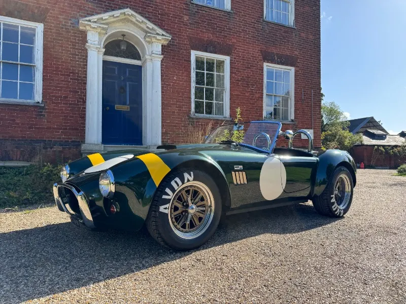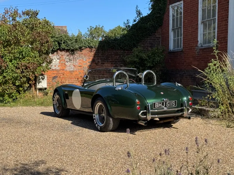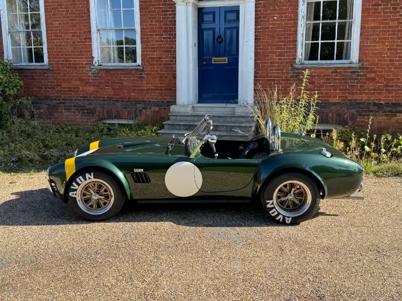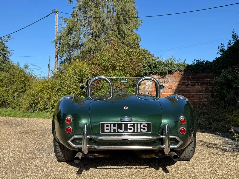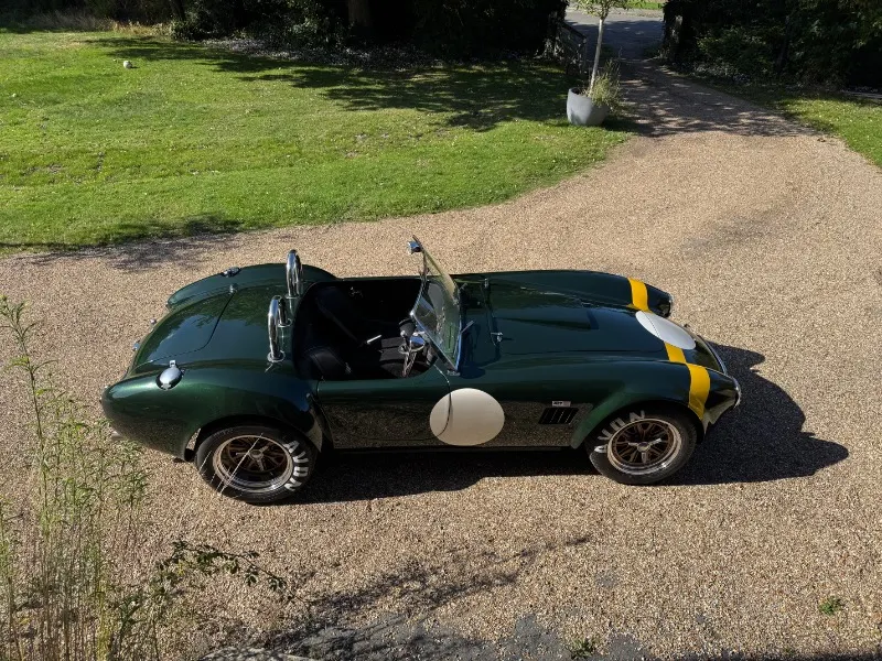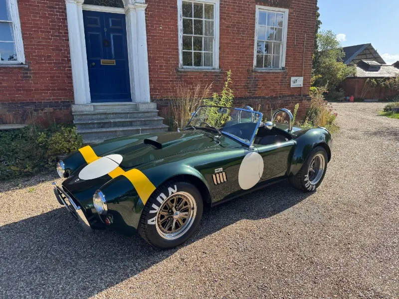RAM SC COBRA “Powered by Ford V8” This beautiful RAM Cobra was correctly registered 10/11/1999 . Its one owner from new has only covered 2793 recorded miles . Finished in classic metallic British racing green coachwork with removable yellow identity stipe and white roundels . Detailed with chrome bumpers , Cobra badges, Stainless steel wipers, Stainless steel side vents, Bullet mirrors, Twin single hoop roll bars, Twin Large Aston polished aluminium fuel fillers . 16” Image Hallibrand alloys with bronze inserts , Faux aluminium spinners, Pirelli P6000 tyres . Classic black interior with black carpets, Original style Flat Dashboard with classic smiths instruments, Black Willans harness seat belts, Cobra gear knob, Wood rim steering wheel, Heater ! . Battery cut off . Powered by a FORD 351ci V8 engine with a Chrome air filter, 4 Barrel Edelbrock carburettor, “Cobra powered by Ford” Rocker covers , Aluminium radiator, Aluminium header tank, Polished aluminium bulkhead. Underslung exhaust system , 4 Speed manual gear box . Superb Reynard backbone chassis . (Ram were authenticated by Shelby) Jaguar brakes and differential . Coil over shock adjustable suspension . History file includes original build manual , Mots , Copy of SVA/IVA Certificate etc A superb classic Cobra with a FORD V8 . £38500