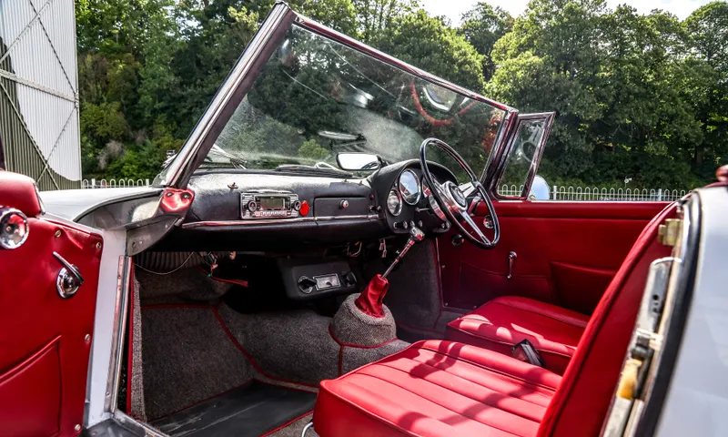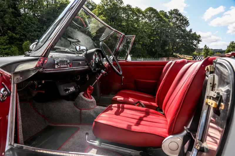 A rare blend of Italian design, technical pedigree, and British coachwork heritage, this Alfa Romeo 2600 Spider is a standout example of early 1960s motoring excellence. Inside, the Alfa presents beautifully, having been re-trimmed to a superb standard. The new Rosso leather upholstery and grey carpeting bring a rich contrast and refined elegance to the cabin, carefully echoing the model's original styling while elevating the overall ambience. The restoration work has been entrusted to respected marque specialists such as K&L of Golders Green, Century Classics of Hungerford and Benalfa of Westbury, each known for their expertise with classic Alfa Romeos.