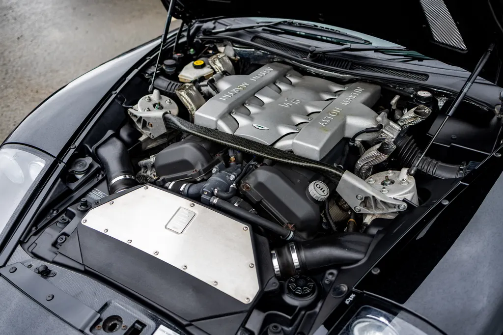 The Vanquish's bonded aluminium chassis, combined with traditional craftsmanship, ushered in a new era for Aston Martin. Underneath the bonnet is a 460bhp V12 engine delivering power through a six-speed automated manual gearbox. (Aston later offered to replace the controversial gearbox with a more conventional manual alternative, at great expense.) A total of 1,086 Vanquish S models were manufactured between 2005 and 2007 following the car's debut at the 2004 Paris Motor Show. Aston's engineers increased the power over the standard Vanquish from 460bhp to 520bhp, and with a top speed exceeding 200mph, the Vanquish S was, at the time, the fastest production Aston Martin ever produced. Discreet visual changes to the 'S' included a bigger, revised grille, front splitter and a raised rear 'spoiler' built into the boot lid to keep the car stable at high speed.