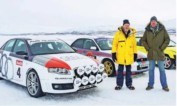 On location in Sweden, he and the crew modified their machines with Clarkson going for full Audi rally livery, including nine spotlights, before taking the car on a road trip across the Arctic circle. Back in the UK, any film damage has been repaired and the car recommissioned and serviced including its fresh eye-catching livery, and the suspension has had a total overhaul and fitted with a Bilstein B14 coilover system. The car's engine was unmodified on the show - its secret weapon being a flame-throwing exhaust system.