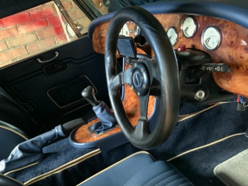 This is the ultimate and final PV petrol engine factory built Sebring Healey 3000 with all BMW running gear. Built in 2016 before Phil Overall sold the company to an EV manufacturer who also made a 356 but they are very expensive and only manage about a quarter of the range. It features the fuel injected bullet proof 6 cylinder E46, complete power train and comes with all alloy long range fuel tank and is good for 400 miles. The wire wheel removal tool has never been used. It was factory premium built less than 7k miles ago and comes with a recent MoT and comprehensive factory works build with photographic history. Luxurious heated Blue leather seats with Cream piping and power windows.