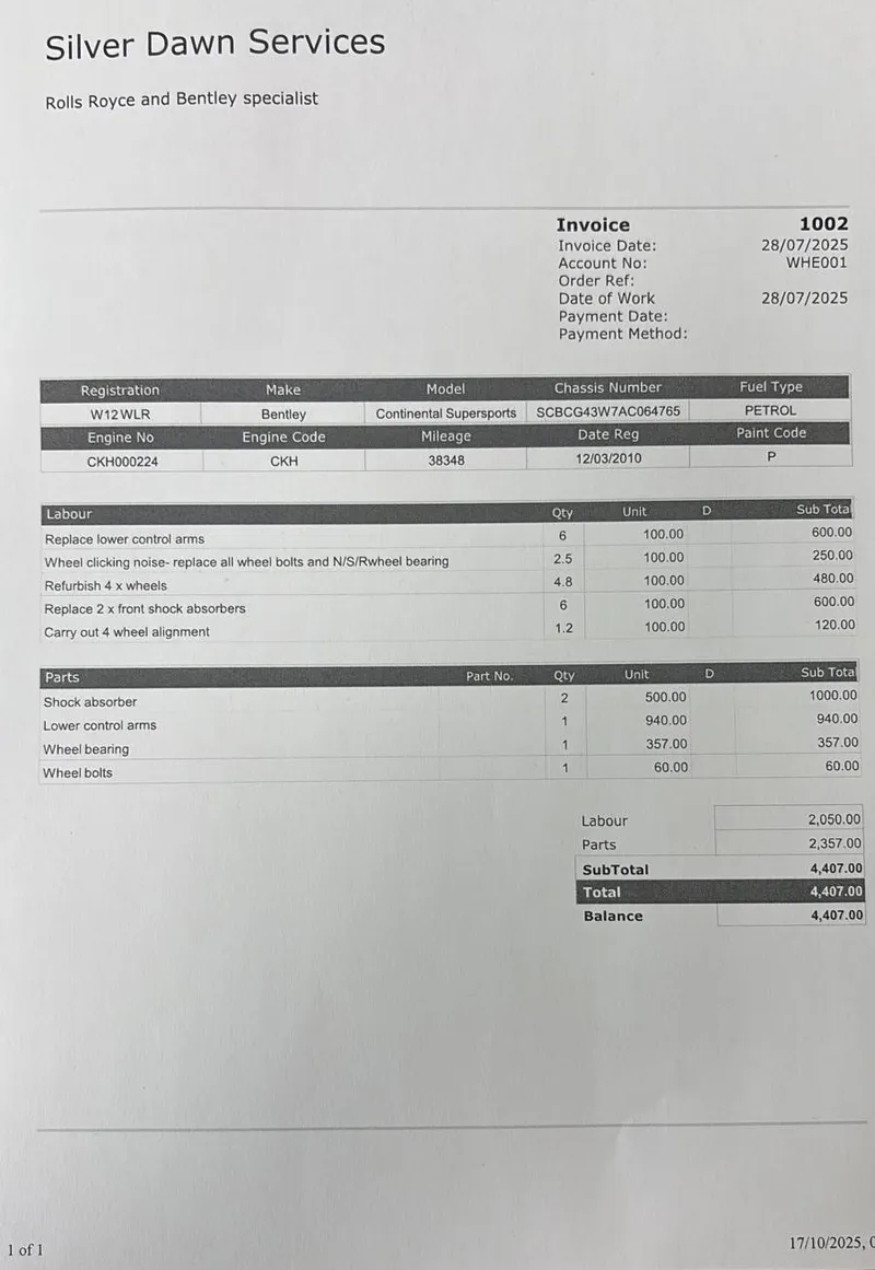 02/06/2010 Service Harwoods Bentley 1,860