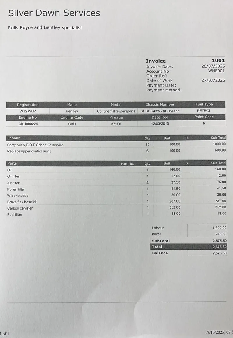 Boasting a comprehensive Bentley dealer and specialist history, the latest service, the larger of the scheduled fulfilled by renowned specialists Silver Dawn Services which included replacing upper and lower suspension arms, two new front shock absorbers, wheel refurbishment and alignment and new wheel bearing. Supplied with its driver's manuals, service book and a V5C registration document, this fantastically quick car would put a smile on any driver's face. We welcome any inspection of this amazing, showroom condition, Bentley with the W12 cherished plate included in the sale. Consigned by Mathew Priddy