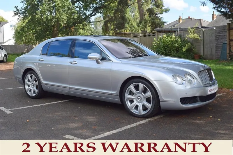 2008/08 Bentley Flying Spur Mulliner. Finished in Silver Tempest with 20 inch Mulliner alloys and an electric glass sunroof. The interior is again Mulliner design in Portland leather, stitched in Beluga. Only 79,000 miles with Full Service History. Immaculate condition throughout.