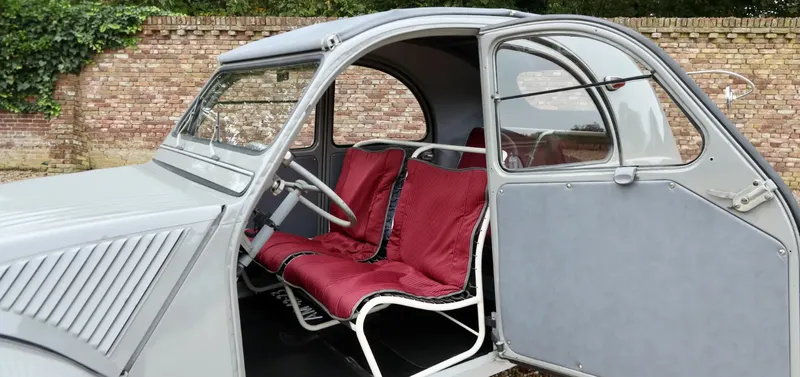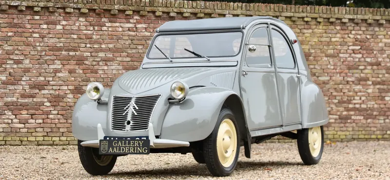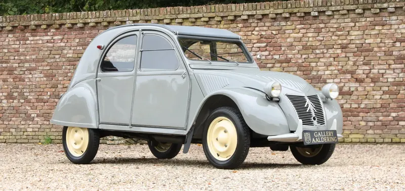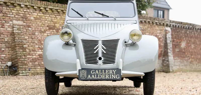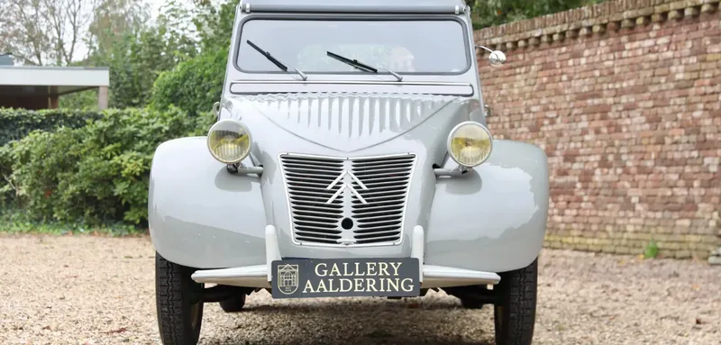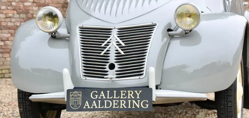 Citroën 2CV AZ – 1955 (restored condition). The 1955 Citroën 2CV AZ is one of the most iconic representatives of the French people’s car from the 1950s and a true legend within the Deux Chevaux scene. This example was discovered in a garage in Essonne, France, and has since been fully restored and carefully rebuilt by a dedicated Citroën enthusiast in the Netherlands. The restoration is thoroughly documented with photographs and a detailed history file, underlining the authenticity and meticulous care that went into the project. The body is finished in Gris Clair with a red interior, a classic and timeless combination that perfectly highlights the character of the 2CV. In Dutch ownership since 1995, this vehicle has become a well-known presence among collectors and at Deux Chevaux events. Mechanically, the car is in excellent condition and is fantastic to drive. With its lightweight construction, the famous centrifugal clutch system, and the ingenious simplicity of its 1950s design, the 2CV offers a driving experience that is both charming and full of character. This example is not only a perfectly restored 2CV, but also an important piece of Citroën history. It combines authenticity, maintainability, and driving pleasure in a way that appeals to both collectors and enthusiasts. For anyone looking to acquire a classic French icon in top condition, this 2CV AZ offers a unique opportunity to own a piece of automotive history that is ready to be enjoyed on the road and at events. Gallery Aaldering is Europe’s leading Classic Cars specialist since 1975! Always 400 Classic and Sportscars in stock, please visit www.gallery-aaldering.com for the current stock list (all offered cars are available in our showroom) and further information. We are located near the German border, 95 km from Düsseldorf and 90 km from Amsterdam. So easy traveling by plane, train, taxi and car. Transport and worldwide shipping can be arranged. No duties/import costs within Europe. We buy, sell and provide consignment sales (selling on behalf of the owner). We can arrange/provide registration/papers for our German (H-Kennzeichen, TÜV, Fahrzeugbrief, Wertgutachten usw.) and Benelux customers. Gallery Aaldering, Arnhemsestraat 47, 6971 AP Brummen, The Netherlands. Tel: 0031-575-564055. Quality, experience and transparency is what sets us apart. We look forward to welcoming you in our showroom.