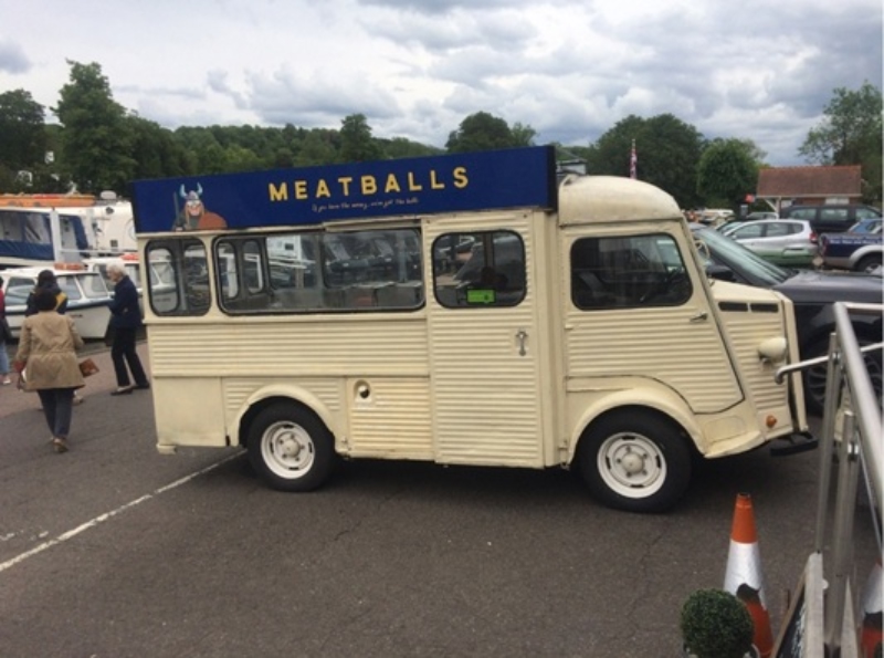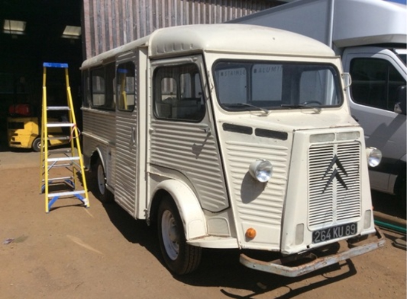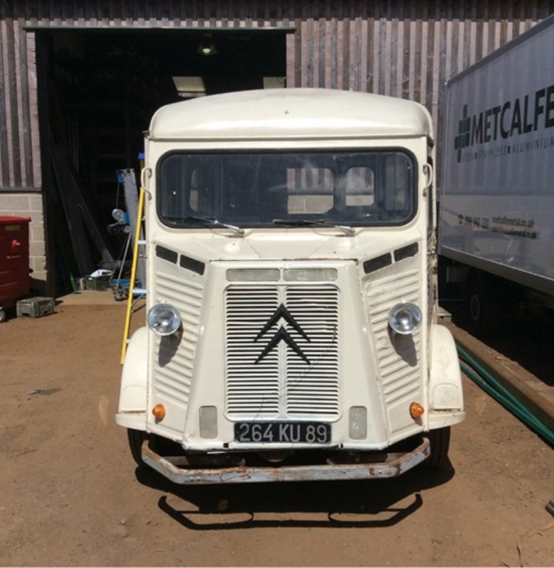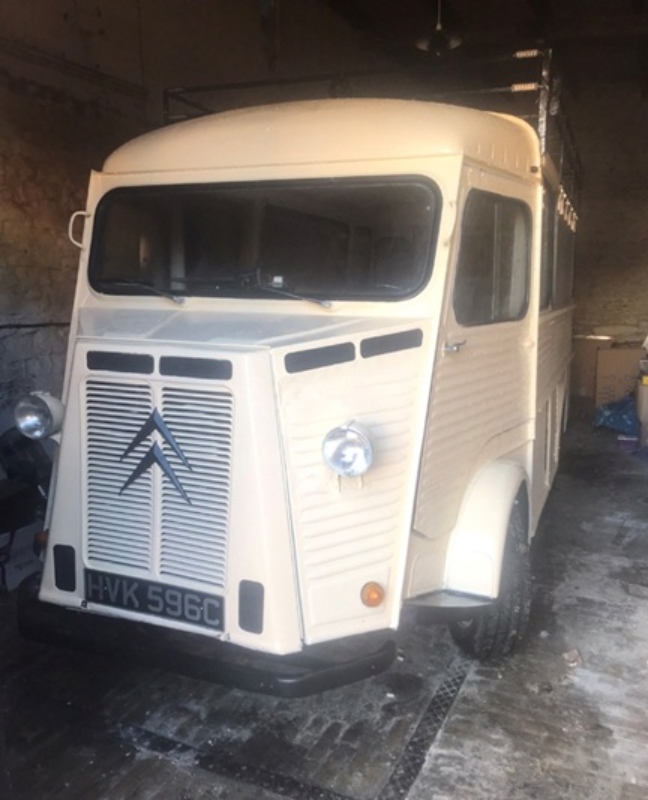 Tyre pressure - 50 psi all 4, height: 8ft W:6ft. Length: 16ft. Pantry: 10.5ft. Engine 1.7L 57HP petrol. 1975 Vintage Citroen HY refurbished catering van. Built in Paris France as a Police people pickup. So windows all around and as per measurements slightly longer than standard. It has been fully renovated keeping to original design including chassis and roof. All outside appearance authentic including appliances. Though we had to change side windows as original corroded, keeping with design. All kitchen compartment fully insulated and interior wood surface. Wheel size changed from French to UK standard to fit domestic tyres. The van powered by original 57hp petrol engine is just enough to power the van but in order to facilitate for a fully equipped kitchen powered by LPG gas and 220V separate circuits. Gas and electric certificate. All interior and exterior electrics redone including control panel. Content: Gas grill salamander. Gas cooking range. Gas grill. Gas Griddle. Gas Crepe maker with dual tops. Bain Marie 2 basin electric. Hot water electric warmer. Large 2 door under-counter fridge. Bao bun warmer. Two external petrol generators one modern one antique.