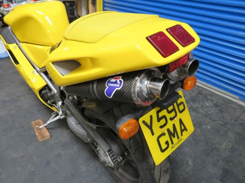 This lot will be auctioned via Iconic Auctioneers, The Iconic Sale at Race Retro 2026 - Motorcycles on Sunday the 22nd of February, Stoneleigh Park, Stoneleigh Rd, Coventry, CV8 2LG. The Ducati 996 was available from 1999 for only three years before being replaced by the 998 It carried over the classic Tamburini design from the legendary 916 This rare Giallo Fly yellow Biposto example is presented in good running order and UK-registered from new Recent full major service from Louigi Moto (December 2024) totalling over £1,000 and included timing belts and brakes Fitted with lightweight Marchesini wheels and Termignoni exhaust end cans Big history file containing numerous receipts, original handbook, service book, spare key and old MOTs MOT until March 2026 Great opportunity to purchase an original 996 Biposto in Giallo Fly yellow UK-registered on a current V5C