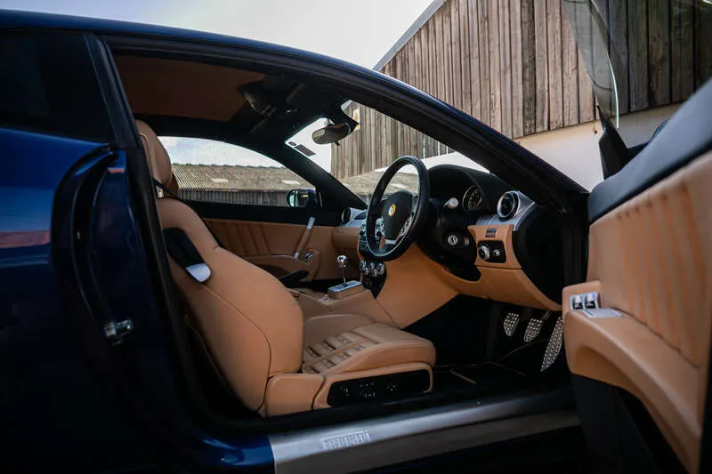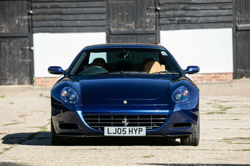This lot will be auctioned via Iconic Auctioneers, The Iconic Sale at the NEC Classic Motor Show 2025 on Saturday the 8th of November, NEC, Birmingham, B40 1NT. As a mark of respect for their decade's long working relationship, Ferrari named the 612 after the legendary Sergio Scaglietti, whose famous design house, Carrozzeria Scaglietti, was responsible for the look of some of the most stunning coachbuilt Ferraris in the 1950s and 1960s. The design of the 612 is said to have been inspired by the 1954 Rossellini-Bergman custom 375MM, which was commissioned by film director Roberto Rossellini for his lovely wife, the actress, Ingrid Bergman. The model features deep side scallops and large headlights together with a long, sleek silhouette and the result is an imposing, distinctive looking car, projecting dynamism and power.   This sporty front-engined, rear-wheel drive Berlinetta is a paradox Ferrari, being an energetic car to drive, yet also having four full seats for passengers, making it suitable for longer journeys and city use too. A genuine departure from previous GT models, the 612 Scaglietti's transaxle transmission sees the rear-mounted 6-speed gearbox working with the limited-slip differential in a shared function and this, combined with the first ever all aluminium body on a 12-cylinder Ferrari, makes for fantastic dynamics as well as improved comfort and safety.   The majority of these cars were built with the F1 automatic gearbox, however,there are always customers who prefer a three-pedal option, and this is one of just 32 examples believed to be produced for the UK-market and one of just 199 manual gearbox cars manufactured worldwide. It's finished in the very desirable and understated combination of Tour de France Blue (544) with tan leather and is in superb condition throughout as at the time of cataloguing the odometer displayed just 7,724 miles.   Registered new on 28th May 2005, this 612 has been used sparingly but always diligently maintained even when the mileage was low. The original leather bound service book displays six stamps, although invoices on file suggests it has received seven annual services. It’s benefited from three all important cambelt changes with the latest one being in July of 2021. It’s also supplied with the original dealer book pack with all the relevant manuals and a Ferrari brochure demonstrating an 'on the road' price at the time of £170,500, before options of course.   Acquired by our vendor in 2021 with the intention of completing a European Grand Tour at some point, something that he had always wanted to do and for which the Scaglietti was eminently suitable. With the Grand Tour scheduled for July of this year, the car was despatched to Dick Lovett Swindon in June and they carried out an annual service, engine oil and filter change, brake fluid change, replacement of the headlining, hand brake shoes, air-conditioning refill and fitment of a new Ferrari battery. As noted in its most recent MOT, a pair of lower suspension ball joints and new wipers were also fitted to rectify those advisories. The account for this totalled some £8,000 and we understand that the Ferrari behaved impeccably on the extended European Tour.   With that 'bucket list' box ticked, the Scaglietti is now for sale so, if you are in the market for a beautifully presented, very low-mileage, fastidiously maintained, four-seat Ferrari Grand Tourer with a manual gearbox, then we encourage your viewing of this elegant 612 Scaglietti at our Iconic Sale at the NEC.