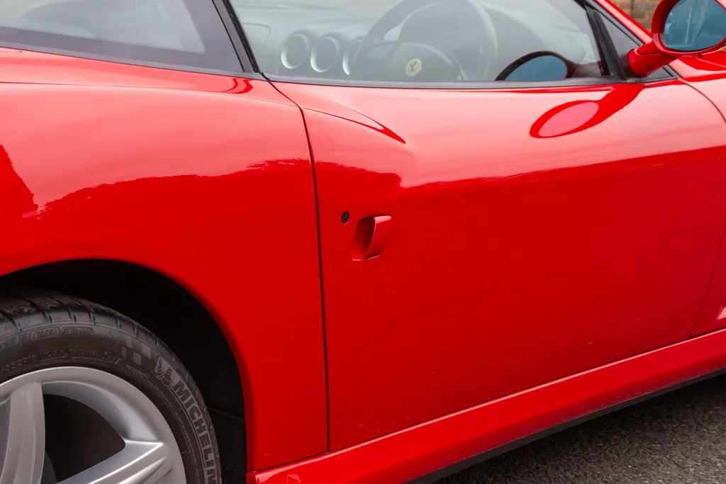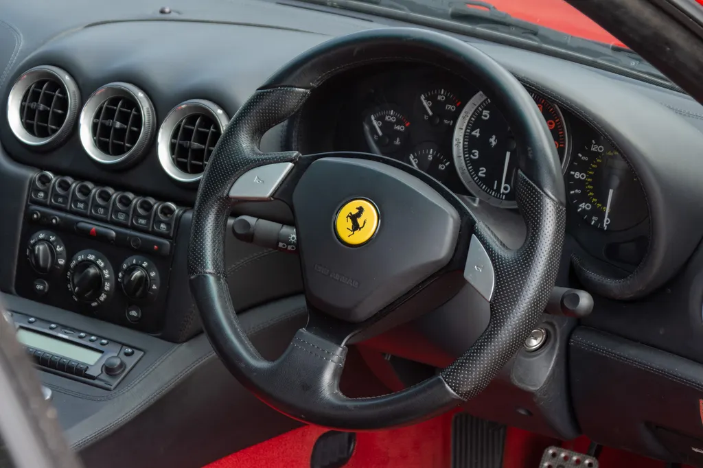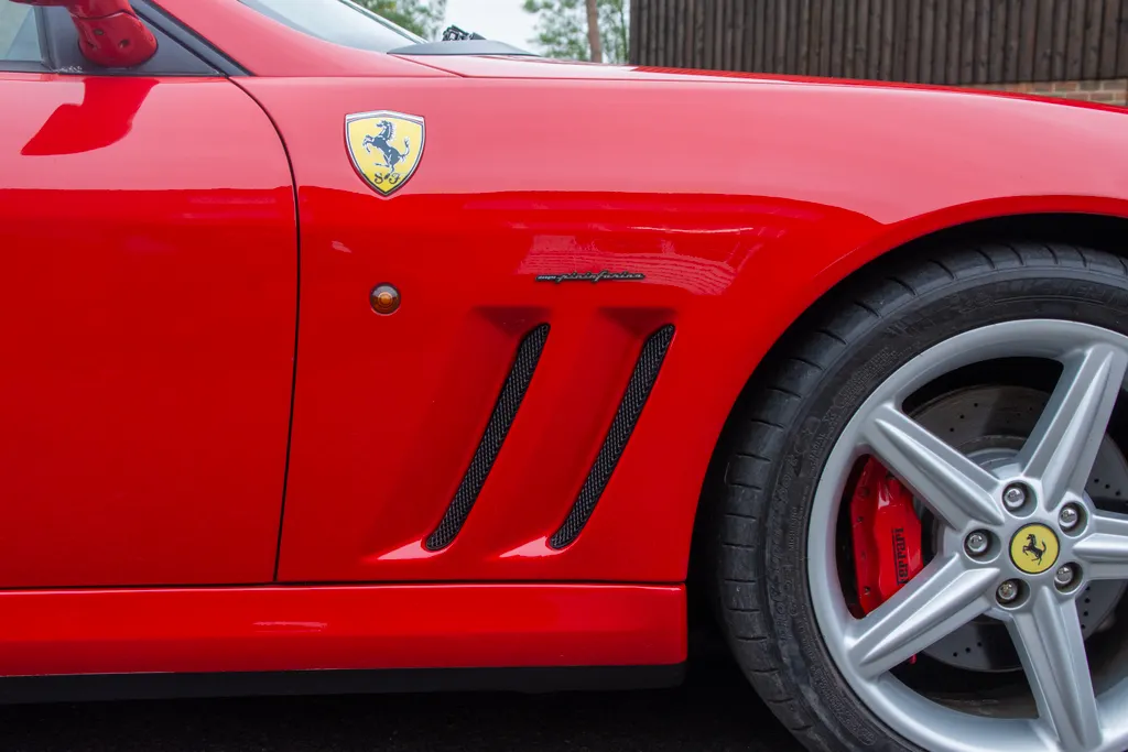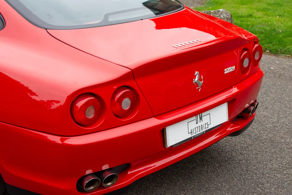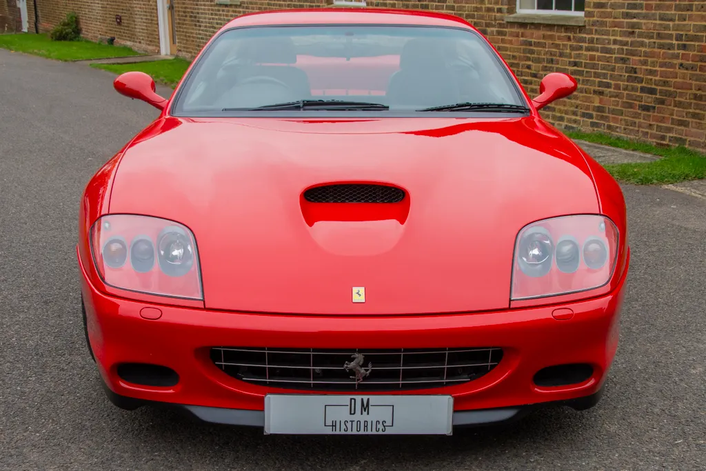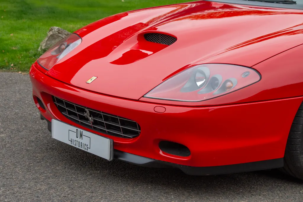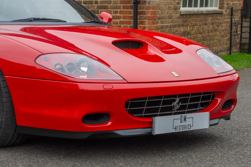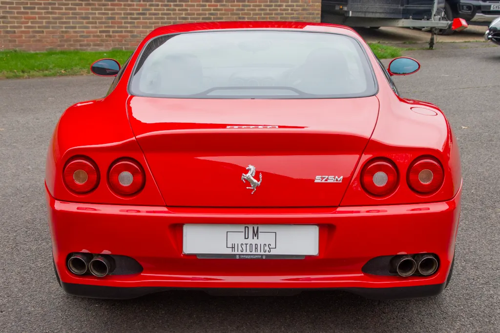 Rare Manual Example – One of only 69 right-hand-drive Ferrari 575M Maranellos fitted with the six-speed open-gate manual gearbox. Low Mileage – Just 14,702 miles from new, supported by service history. Rosso Corsa over Nero – Classic Ferrari specification with red contrast stitching. Long-Term Ownership – Registered new in 2003 and owned by the same keeper since 2007. Major Maintenance – Servicing work including new clutch, cambelt, and TPMS/ECU replacement. OVERVIEW A true modern classic, the Ferrari 575M Maranello combines front-engined V12 performance with timeless Pininfarina styling and the purest form of driver involvement – the open-gate manual gearbox. First registered in November 2003, this example is one of just 69 right-hand-drive manuals ever built, making it among the rarest and most collectible of its era. Presented in Ferrari’s signature Rosso Corsa with Nero leather and red contrast accents, it perfectly captures the marque’s character as both a high-performance grand tourer and a design icon. Under the bonnet sits the 5.7-litre naturally aspirated V12, producing around 508 bhp and delivering its power through the highly coveted six-speed manual transmission. Covering just 14,702 miles from new, this car has lived a cherished life, remaining in long-term single ownership. Its history is supported by Charles Hurst Ferrari service records, with a major service carried out in 2022 including a new clutch, cambelt, filters, and brake fluid, while further works in 2025 saw a new undertray, TPMS sensors, ECU replacement, and fresh Michelin Pilot Sport tyres. Accompanied by a clean MOT pass in 2025 with no advisories and finally a health check and cambelt replacement this August. Beautifully maintained and rarely used, this 575M Maranello manual represents a rare chance to secure an exceptionally low-mileage, highly desirable Ferrari that will appeal equally to collectors and drivers alike. SPEC HIGHLIGHTS 5.7-litre naturally aspirated V12 (circa 508 bhp) 6-speed manual transmission with open-gate shifter Rosso Corsa with Nero leather and red contrast stitching 18-inch five-spoke alloy wheels Aluminium door sills Electrically adjustable seats Ferrari-branded stereo and luggage shelf Climate control and switchable sport mode