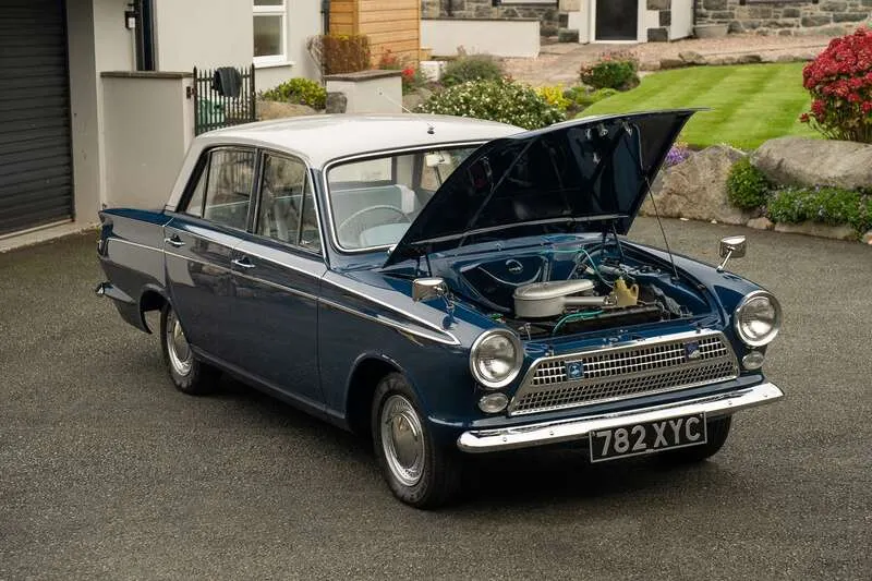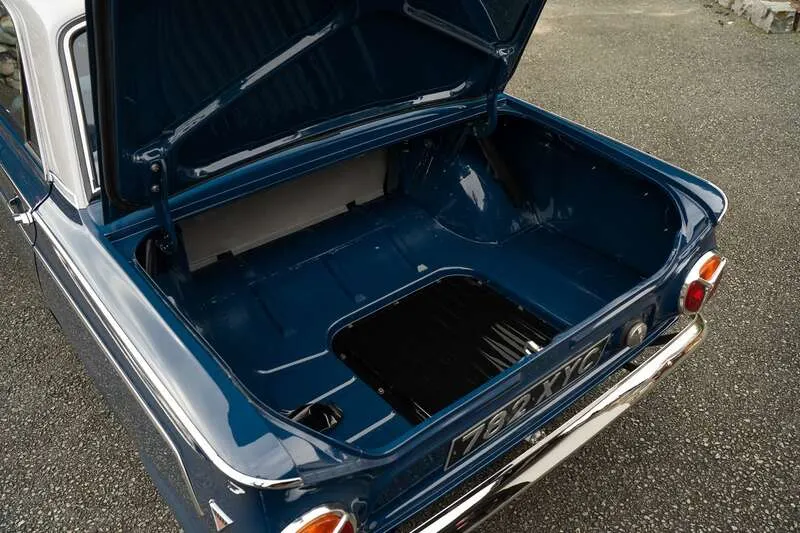 This lot will be auctioned via Iconic Auctioneers, The Iconic Sale at the NEC Classic Motor Show 2025 on Saturday the 8th of November, NEC, Birmingham, B40 1NT. Sometimes a restoration transcends the mechanical and becomes an act of devotion. Such is the case with this remarkable Ford Consul Cortina Mk1 1500 Super, rediscovered in 2017 as a forlorn shell in a part-exposed barn in Garstang, Lancashire, and brought painstakingly and lovingly back to a level of perfection far beyond anything Ford could have imagined when it first left Dagenham in April 1964. Having lain dormant since 1992, the Cortina (the Consul name was dropped in late 1964) was acquired by our vendor as a dismantled project, twice sold as a would-be restoration but never completed. It was, quite literally, a jigsaw in boxes, yet all the key elements of originality remained. The brief was ambitious: a full nut and bolt rebuild to concours standards, but still capable of being driven and enjoyed. The bare shell was sent to Environmental Stripping in Staffordshire, revealing sound metal beneath the surface grime but also the scale of the challenge ahead. A suitable craftsman was found in Craig Watton of Classic and Custom Services, Castleford, West Yorkshire, widely respected in Cortina circles for the exceptional quality of his work. The brief demanded perfection, with flawless shut lines, invisible welding and a bodyshell worthy of a factory prototype. Hundreds of hours later, that vision was realised. The shell was re-dipped and treated in epoxy primer by Ribble Technology in Lancashire, its electrostatic coating ensuring long term protection, before being refinished under Watton’s supervision in the factory colours of Ambassador Blue with a Platinum Grey roof. Reassembly followed with surgical precision. Every component was restored when possible and if not, replaced with new/old stock or purchased from the very helpful Mk1 Cortina Club. Bodywork panels were supplied mainly by Expressed Panels (such is the quality, they are actually endorsed by Ford), before being refitted with the utmost care. The interior was retrimmed in the correct Kingston Blue and Lucerne Blue, while the 1,498cc pre-crossflow engine was fully rebuilt to original specification with valves upgraded for modern fuel. Other sensible upgrades included H&H electronic ignition, a laminated windscreen, front disc brakes with servo assistance, and suspension rebuilt to factory geometry by GAZ Shocks. Although not a Lotus or GT, this 1500 Super embodies the very best of period Ford refinement, light, lively and wonderfully easy to drive. Its quality speaks for itself. At its first major outing, the Mk1 Cortina Owners Club National Show in 2021, it won Best in Class and Overall Supreme Champion, a feat repeated in 2024, making it a rare double National Champion. It also claimed Car of the Show at the Caerwys Classic Car and Bike Show 2023 in North Wales and has twice been exhibited at the NEC Classic Motor Show, driving to and from the venue on each occasion. Featured in a six-page spread in RetroFord magazine in May 2025 and widely admired online, this Cortina is no trailer queen. Averaging fewer than 1,000 miles a year, it is meticulously serviced, oil changed every winter, coolant upgraded to Evans Waterless, always garaged, covered and never driven in the rain. Originally supplied by Hockey’s Garage Ltd of Chard, Somerset, and first registered on 1st June 1964, it is accompanied by its original service book, owner’s handbook and Ford repair charges schedule. A truly exceptional Mk1 Cortina, restored to Concours d'Elegance standard, twice a National Champion and among the very finest examples in existence.