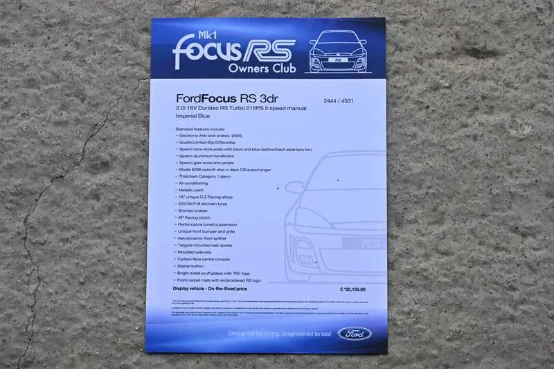 This lot will be auctioned via Iconic Auctioneers, Online Auction - 30th October on Thursday the 30th of October. Background:Launched in 2002, the Focus RS marked Ford’s return to the performance hatchback arena, drawing directly from the brand’s rallying heritage. Developed by Ford’s Special Vehicle Engineering (SVE) team, the RS featured a 2-litre turbocharged Duratec engine producing 212bhp, delivered through a Quaife automatic torque-biasing differential and a close-ratio 5-speed gearbox. With extensive chassis revisions, uprated brakes and a bespoke body kit, the Focus RS offered exceptional handling and performance for its class, earning instant recognition as a true modern classic. The car:First registered in 2003, this example is finished in the model’s signature Imperial Blue, complemented by its factory correct 18" OZ Racing alloy wheels, including a full-size spare. It has had seven owners from new and is accompanied by a substantial history file documenting regular servicing and maintenance throughout its life. At 66,000 miles, the cambelt was replaced, and in 2024 the car received significant refurbishment work, including a new clutch, full service and a comprehensive underside rebuild. The rear axle was stripped and rebuilt, the exhaust system refurbished and refitted, and new brakes were fitted all round. The result is a truly wonderful and mechanically sound example of a Focus RS. The previous owner kept the car for around five years, during which thousands were spent, reflecting careful ownership and attention to detail. With its extensive recent maintenance and detailed history, it represents an excellent opportunity to acquire a properly maintained example of Ford’s celebrated first generation RS. The exterior presents superbly, with the underside immaculate and still showing all the original purchase stickers. The alloy wheels have been refurbished and the tyres show good tread with plenty of life remaining. The interior is likewise immaculate, with all the original switches and seats working as they should. The previous owner sourced new original dealer stickers, and the car also comes complete with all the correct book packs and dealer handbooks. This is a rare opportunity to own an outstanding example of an increasingly popular fast Ford, boasting low-mileage and careful ownership. Location: Wiltshire Photos: Professional Seller: Private