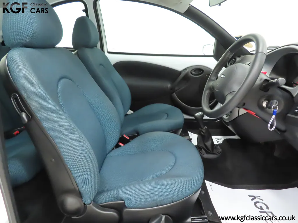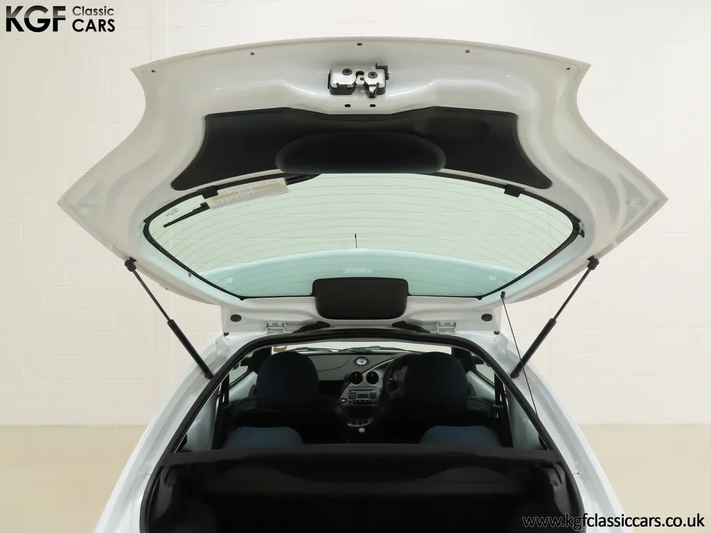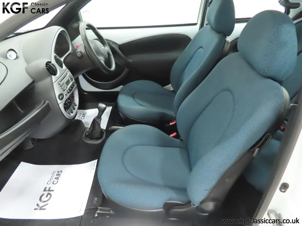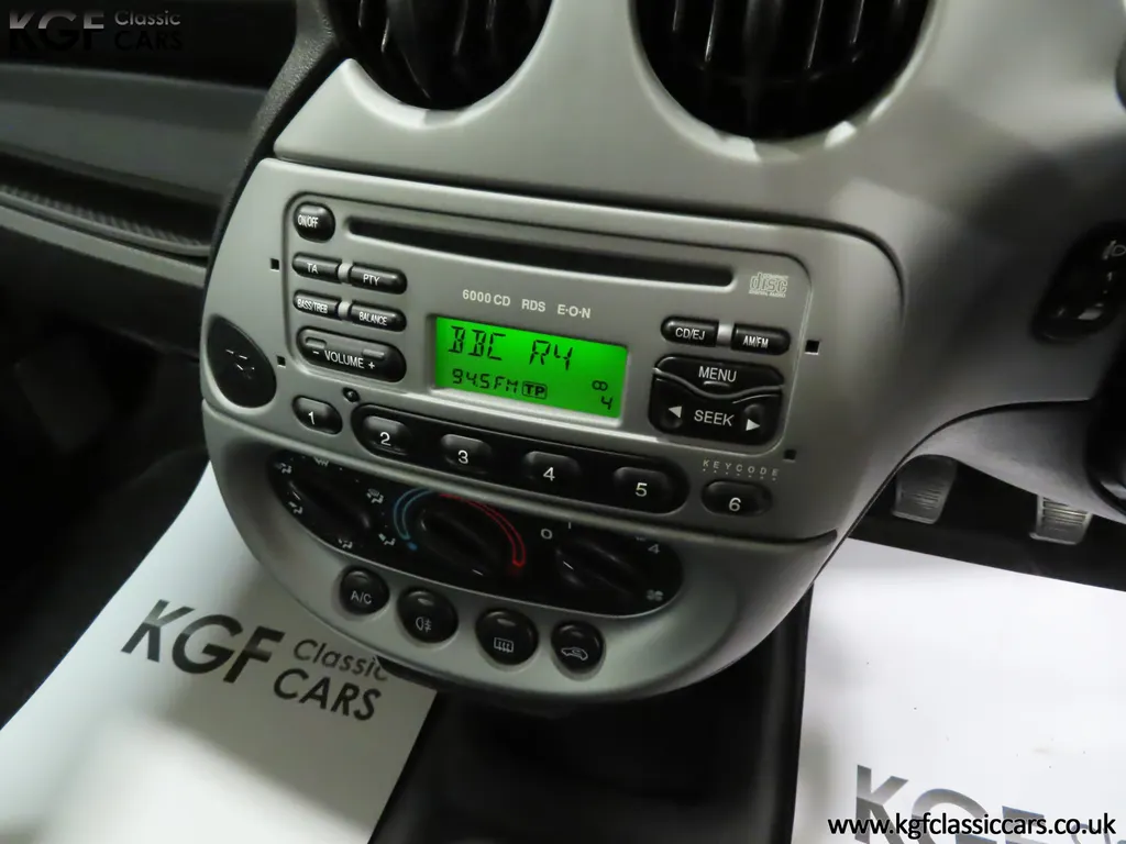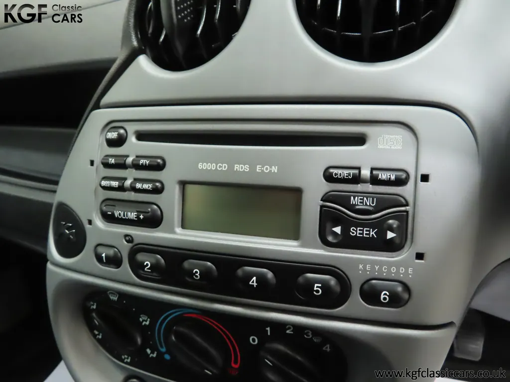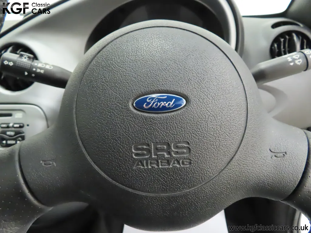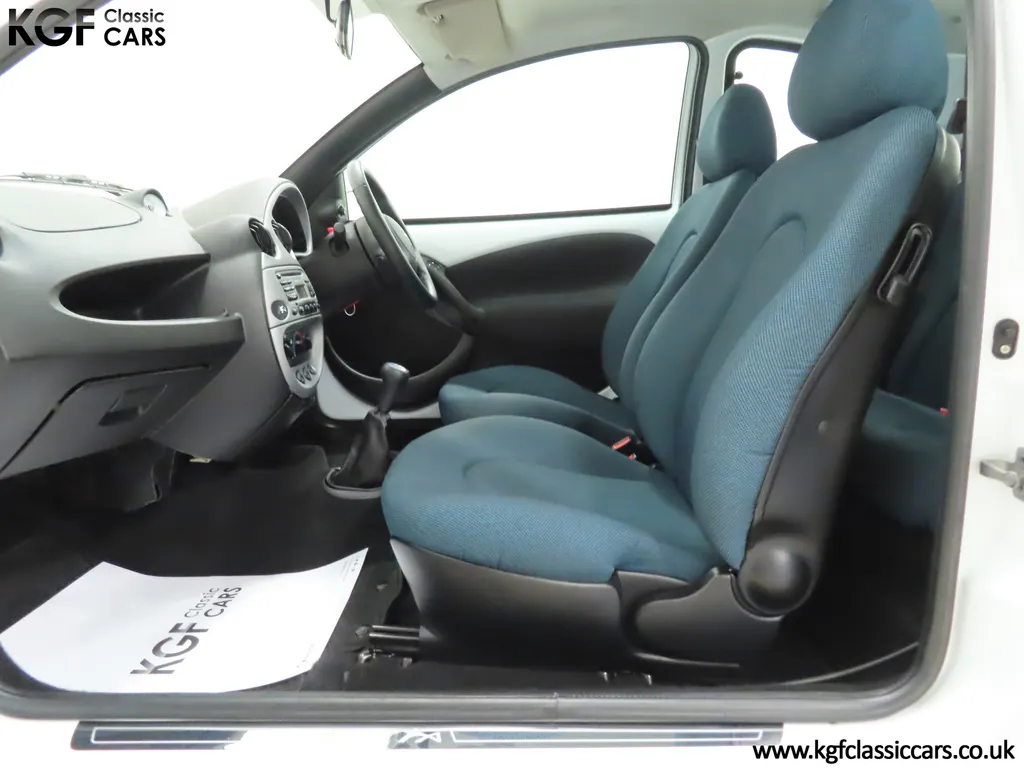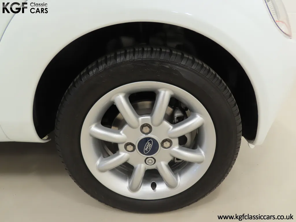 FOR SALE A zippy Ford Ka Zetec Climate with only 9,854 miles and one owner from new. EQUIPMENT Large body coloured bumpers, roof spoiler, colour coded door mirrors electrically operated and heated, Quickclear heated front screen, heated rear window, halogen headlights, driver’s airbag, steel safety cage, front and rear energy absorbing crumple zones, side-impact door beams, Passive Anti-Theft System with immobiliser, remote central locking, electric front windows, air conditioning, analogue clock, 50:50 split back seats, door cup holders, rear cup holders, headlining storage net, glovebox, Stereo radio/CD Model 6000. Dealer Options: Ford Luxury Floor mats. EXTERIOR Ford Motor Company’s ‘New Edge’ design language began with the original Ka as the first production Ford to adopt the radical exterior styling mostly recognised with its use of intersecting arcs and crisp lines. This exceptional Ka has covered just 9,854 miles from new with only one owner. Finished in factory original Frozen White, (Code F7), the bodywork and paint finish are simply outstanding with a bright pure shine to the pin-straight panels. A small touched in scuff to the nearside door mirror is the only imperfection worthy of mention. This garaged Ka has none of the common bodywork issues often found and the amazing underside still displays factory labels, long lost on most examples. Ford Supplying dealer number plates, rear screen sticker and tax disc holder remain fitted. INTERIOR The interior of this ultra-low mileage example is beautifully clean and free from wear. The original Tic Toc fabric upholstery in Aquarius Blue colour scheme, (Code AT), is spotless with no wear or damage to the fabric whatsoever. The carpets are pristine having been protected from new by Ford Luxury floor mats and the headlining is perfect. The steering wheel and gear knob display a total lack of wear synonymous with the ultra-low mileage. The funky blob style fascia and incorporated switchgear is as new, and all functions operate seamlessly including the original Model 6000 stereo CD and ice-cold air conditioning. Likewise, the spotless load space boasts an unmarked carpet underneath with the boot floor is as new. Clean, fresh and totally unspoilt. ENGINE & TRANSMISSION The dependable and frugal 1.3 Duratec four-cylinder engine as fitted to all post 2002 non-sporting Ka’s produces a power output of 70bhp and 106Nm of torque to achieve a top speed of 104mph and 0-60 in 14.1 seconds. The engine is quiet and performs faultlessly and all fluids are clean. The pristine engine bay features all factory stickers, plates, PDI markings and even fragile paper labels fully intact to items such as the inner headlamps casings. The five-speed gearbox is light, precise and effortless to use with a perfectly comfortable motorway cruising manner. WHEELS, TYRES & BRAKES The original Zetec specification 14in 8-spoke Minilite alloy wheels remain in perfect condition, as do the Ford emblem centre caps. Matching Continental ContiEcoContact3 165/60 R14 tyres show masses of tread. The tyre fitted to the full-size spare wheel has never been used. Diagonally split dual line brakes with Anti-Lock assistance (ABS) bring the car up straight and steady with brand new discs fitted in November 2025. HISTORY FILE Registered new on 13th August 2007 by Ford Main Dealer, Ringways Motor Group in Doncaster, the car was purchased by a Miss Flavell who is the first and only owner. The car was purchased for use in retirement and as is common, the usage was regular albeit minimal, and it was kept in the garage when not in use. Only upon the owner’s passing in 2025 has the car become available and subsequently was offered to KGF Classic Cars. Recognising the first generation KA’s fast diminishing on our roads and the scarce availability of pristine low mileage cars, we are delighted to present this car ready for its second appreciate owner. A service, full inspection and MOT have been carried out in November 2025 and all maintenance is up to date. Both keys and handbook pack are present along with a paperwork file and original sales brochure for the 2007 model year Ka. In addition, a Ford Main Dealer service and maintenance log allows you to track the verified mileage before Miss Flavell’s local garage, Woodman Service Station Limited (that was incorporated in 1965 and now closed in 2024), maintained the car. Debate over the pronunciation of the name Ka has continued since launch and whether it is to be said with a long or short "a", or with the letters pronounced separately. Even Ford's confused press office has used all three, but the official Ford stance is with a short “a”! Whichever way you may wish to say it, the first examples are now approaching 30 years old and the humble Ford Ka represents a superb value entry into classic car ownership, even more so with this incredible one-owner example with just 9,854 miles from new! MOT November 2026, HPI Clear.