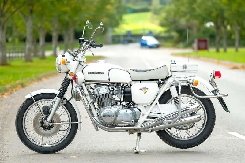 This lot will be auctioned via Iconic Auctioneers, The Iconic Motorcycle Sale at the NEC Classic Motor Show 2025 on Sunday the 9th of November, NEC, Birmingham, B40 1NT. Introduced in the late 1960s as one of Honda’s most versatile four-cylinder machines, the CB750 K6 was also offered in Police-specification for service use worldwide Presented in period white Police trim and fitted with correct crash bars, lights, aerial, document box, briefcase and the distinctive police speedometer Powered by Honda’s 736cc SOHC four-cylinder engine with a 5-speed gearbox, producing smooth and reliable performance suited to both patrol and highway use Retains its factory Police equipment including the original mechanical, cable-driven siren operated by a secondary clutch lever and friction drive to the rear tyre Originally supplied new to the Malta Police Force and imported into the UK in 1987, where it was fully restored and has since been well maintained UK-registered with a new battery recently fitted and described as running and riding well, ready for display or use on the road