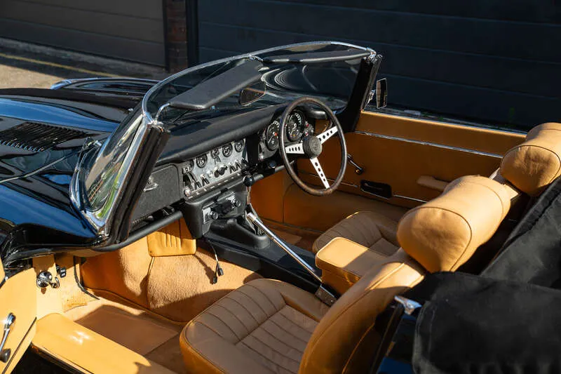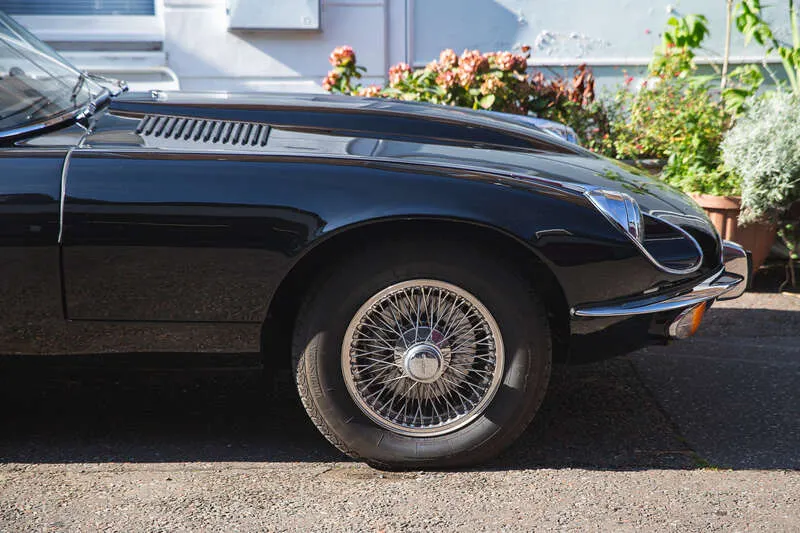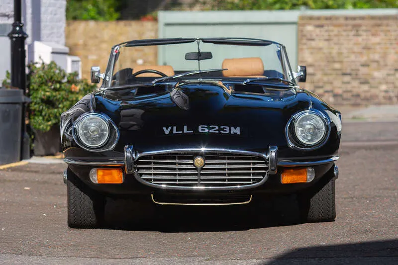 This lot will be auctioned via Iconic Auctioneers, The Iconic Sale at the NEC Classic Motor Show 2025 on Saturday the 8th of November, NEC, Birmingham, B40 1NT. A decade after the Jaguar E-Type arrived, the design progressively matured through various developments until 1971 when the Series 3 was introduced. Designed to showcase the new smooth and torquey 5.3-litre engine, originally developed for Le Mans, the Series 3 cars were available as a Roadster (convertible) or a 2+2 Coupé. These later cars are easily distinguished from their six-cylinder predecessors by the large cross-slatted front grille, flared wheel arches, wider tyres, a pronounced bonnet bulge, updated bumpers, four exhaust tips and a badge on the rear that proclaims it to be a V12. It also featured uprated brakes, power steering as standard and a large horizontal scoop added to the underside of the bonnet to assist with cooling. The interior was entirely new in the V12, with more comfortable seating, stylish new door panels and a smaller, dished and leather-rimmed steering wheel. Being slightly larger and altogether much softer in nature, the E-Type in Series 3 form had lost the wildness of its youth but gained the long-legged touring profile, to which it was arguably better suited. Approximately 7,990 Series 3 Roadsters were sold worldwide before production ceased in 1975. On offer at the NEC Classic Car Show 2025 is this UK-supplied, right-hand drive Series 3 Roadster, finished in black with biscuit upholstery and a matching black hood. First registered in London in 1973, the car was supplied new to its first owner and still retains its original registration, VLL 623M. The Jaguar is accompanied by a substantial history file, including receipts for a £90,000 refurbishment. This work included the replacement of the front wings, doors and boot lid, a full bare-metal respray in black, a retrim in biscuit coloured hide, an engine overhaul with new timing chains, and the installation of a refurbished manual gearbox. The instruments were refurbished, the dashboard upgraded for a more pleasing aesthetic and the wiring loom replaced at the same time. Although impossible to verify, our vendor believes the mileage showing to be correct and is substantiated by the documents within the file. Acquired by our vendor in 2018, the car has been enjoyed regularly on trips across the UK and Europe, where the V12 engine’s effortless power delivery has been fully appreciated. During this period, it has been maintained by marque specialists and fitted with new stainless wire wheels and bumpers, fresh tyres and a new hood with tonneau cover. It's fitted with a retro-style Bluetooth stereo system as a nod to modernity. Most recently, in September 2025, the Roadster was inspected by a V12 Jaguar specialist in Coventry, who carried out tappet adjustments, fitted new gaskets and completed a full vehicle inspection, with the invoice on file. A well documented, UK-supplied Series 3 Roadster, freshly inspected and maintained, offered in excellent order and ready to be enjoyed on the road or as part of a collection.