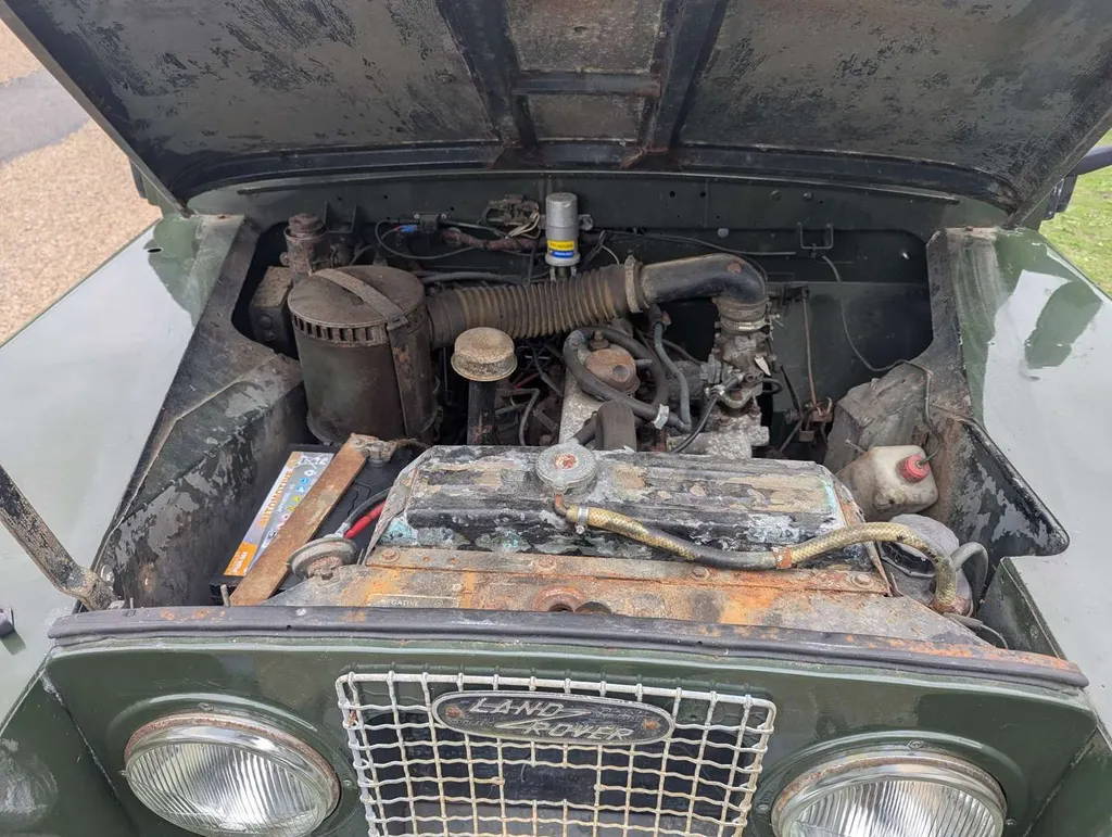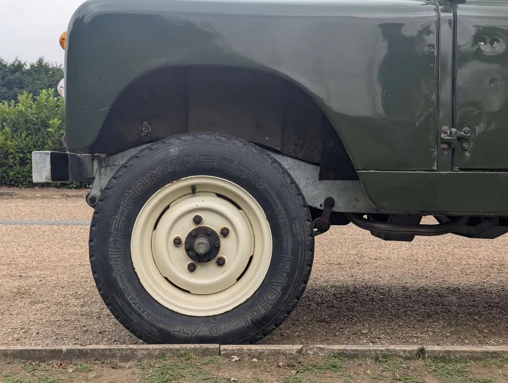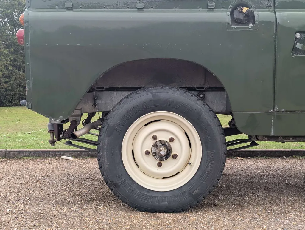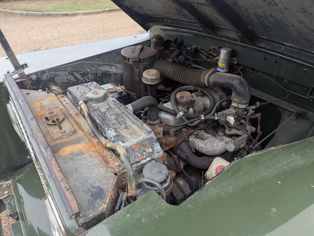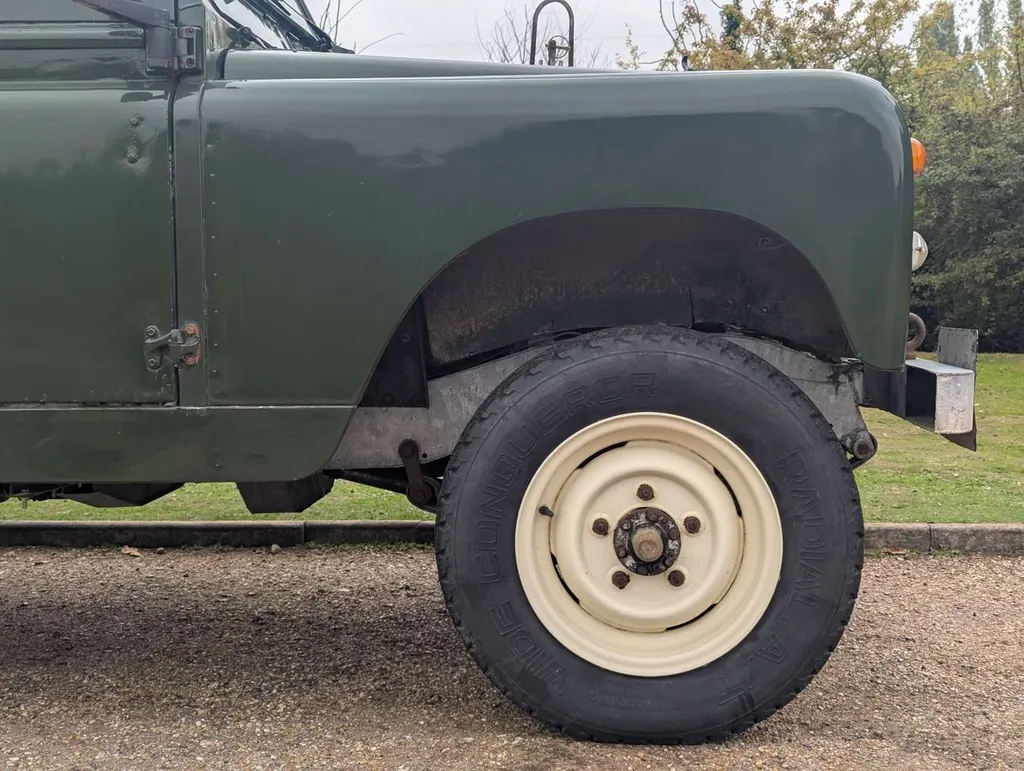 2286cc petrol, manual with overdrive. This green 2.25-litre Land Rover Series 2A received a rebuild on a galvanised chassis by a Land Rover specialist in 2019 at a cost of around £10,000, and has been driven less than 100 miles since then. It has been with its present owner since 2013, and a BMIHT heritage certificate confirms that it was originally sold by a dealer in Nottingham, with a build date of 15th February 1968. It was first registered on 1st April that year. In addition to the galvanised chassis, the recent rebuilt work included a refurbished bulkhead, parabolic springs and a new starter motor. A new fuel pump has also recently been fitted. Today the odometer is showing 90,442 miles. Paperwork includes MoT certificates from 2007 to 2019, current and previous V5Cs, a reproduction handbook and various older invoices – including the invoice which itemises the 2019 rebuild. Following the rebuild the Land Rover received an advisory-free MoT, which has since expired (although it is now exempt from requiring one). Also with the Land Rover are a set of spare keys, starting handle (unused), a spare radiator grille, lamp guards and a new flasher unit. The vendor informs us that the flashers are not currently working. Not specified