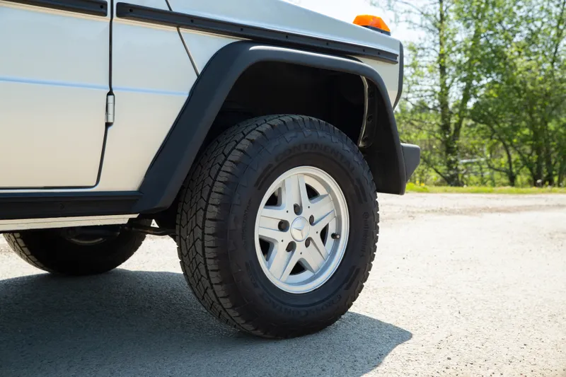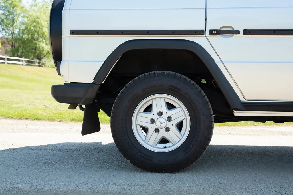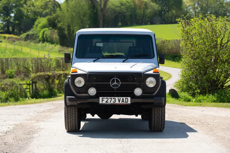 Finished in Astral Silver metallic with iconic plaid cloth interior, this long wheelbase 1989 Mercedes-Benz 280 GE is arguably one of the finest, most original examples of the legendary 'Gelandewagen' available. UK-supplied from new, we are informed it has been maintained to the highest standard with no expense spared. It rides on original 15-inch five-spoke wheels fitted with new Continental CrossContact ATR tyres. The underside is remarkably clean and well-preserved for a classic off roader, having received the same level of attention and care as the body and mechanicals. Under the bonnet sits the dependable 2.7 litre, naturally aspirated, inline-six, delivering approximately 156bhp. Power is sent to all four wheels via a smooth four-speed automatic transmission, complete with locking differentials and selectable high and low range and ensuring true off-road capability.