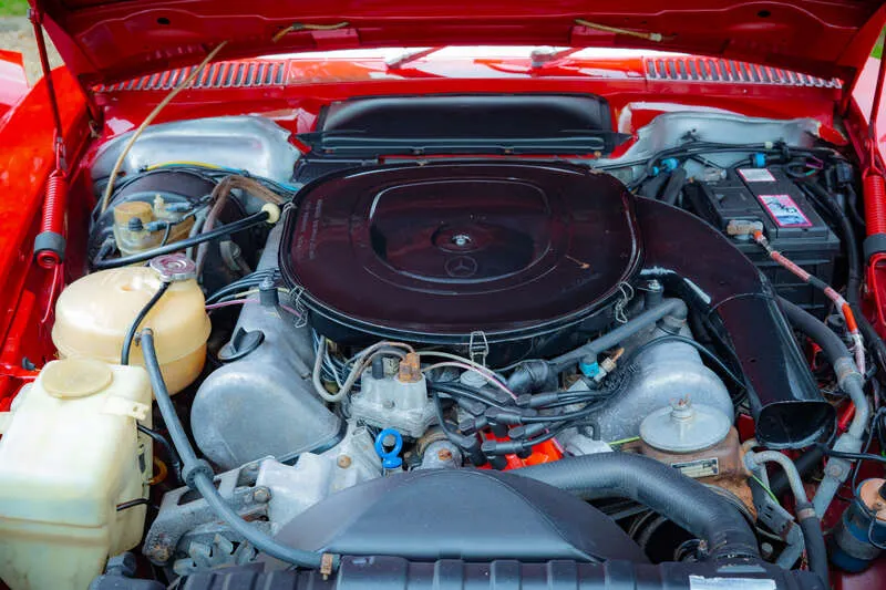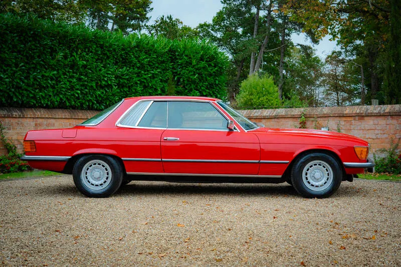This lot will be auctioned via Iconic Auctioneers, The Classic Sale at the NEC Classic Motor Show 2025 on Sunday the 9th of November, NEC, Birmingham, B40 1NT. The 450 SLC was introduced in 1972 as the range-topping model in Mercedes-Benz' C107 line, combining sporting intent with grand touring luxury and quickly establishing itself as one of the marque’s most desirable coupés Built in 1979, this example was UK-registered in 1981 and has had just two previous keepers. In current ownership since 2017 it has been in professional storage since with little to no use Finished in Brilliant Red Metallic (525) over a black leather interior (201) with Burr wood inlays on the centre console and dashboard, presented on its period correct 14" ‘Bundt’ alloy wheels Powered by a naturally aspirated 4.5-litre V8 producing around 222bhp and 167kW, driving the rear wheels through a smooth 3-speed automatic transmission for effortless cruising Offered with its V5C registration document and available for close inspection Presents attractively in its factory colour combination, indicative of careful ownership and light use. An excellent opportunity to acquire a stylish and capable Mercedes-Benz grand tourer