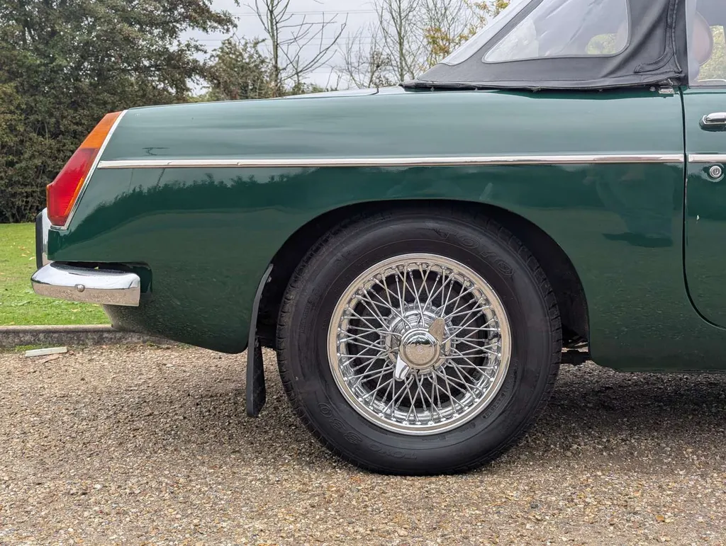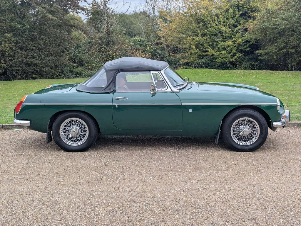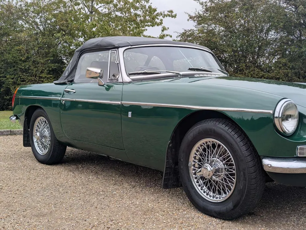 1798cc, auto. This green, chrome-bumper MG B Roadster received a major restoration with a rebuild of its original engine in the 1990s. It's equipped with chromed wire wheels and a smart brown interior, and an automatic gearbox which the vendor believes is an original (rare) factory option.The car has an MoT to 6th August 2026, and its odometer displays 74,121 miles. Its history file contains a good collection of receipts, together with old MoT certificates and tax discs, and the latest V5C which is in the vendor's name. A spare coil is also included. Not specified