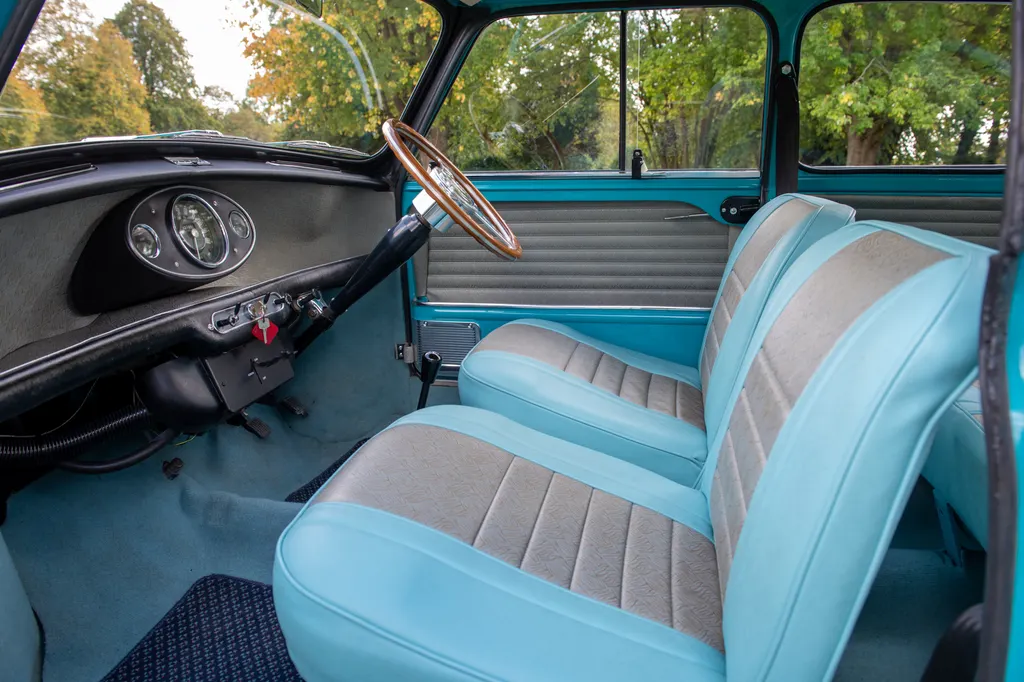 This delightful Mini Cooper was supplied new by Stewart and Arden of Staines in July 1965 and presents wonderfully in the desirable colour combination Surf Blue with a white roof and is fitted with the optional extra of a heater. This superb Cooper retains its original floors, sills and subframes, none of which appear to have been patched up. This example has benefitted in recent years from being totally refreshed, including the replacement of most of the brightwork and attention to mechanicals, paintwork and interior. The car is also fitted with wider wheels and Yokohama tyres. It is believed that the indicated mileage is correct, as we know, that due to an owner's bereavement, the car spent a long time in storage. We are informed that these stunning Mini drives and stops well and that it performs as it should. This eye-catching example is sensibly estimated and ready for immediate use by a new owner. Consigned by Dominic Lake
