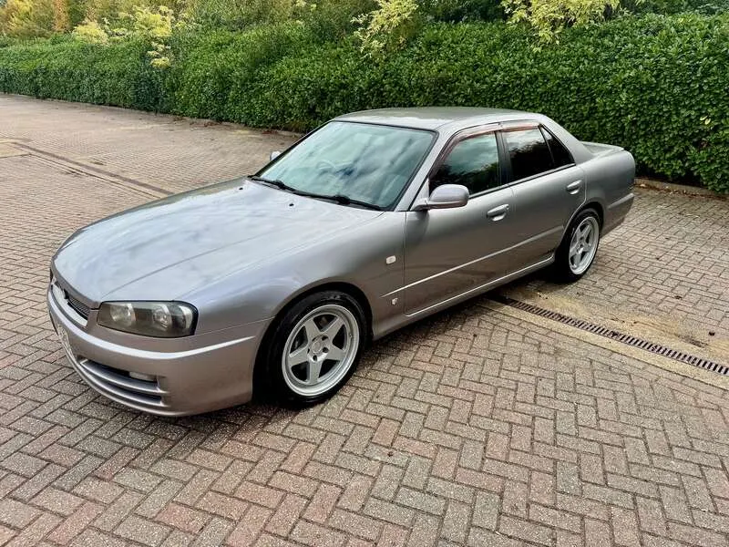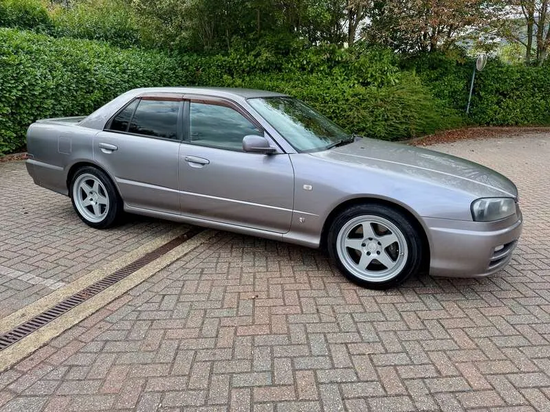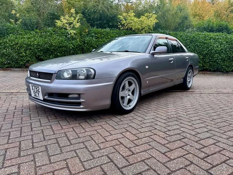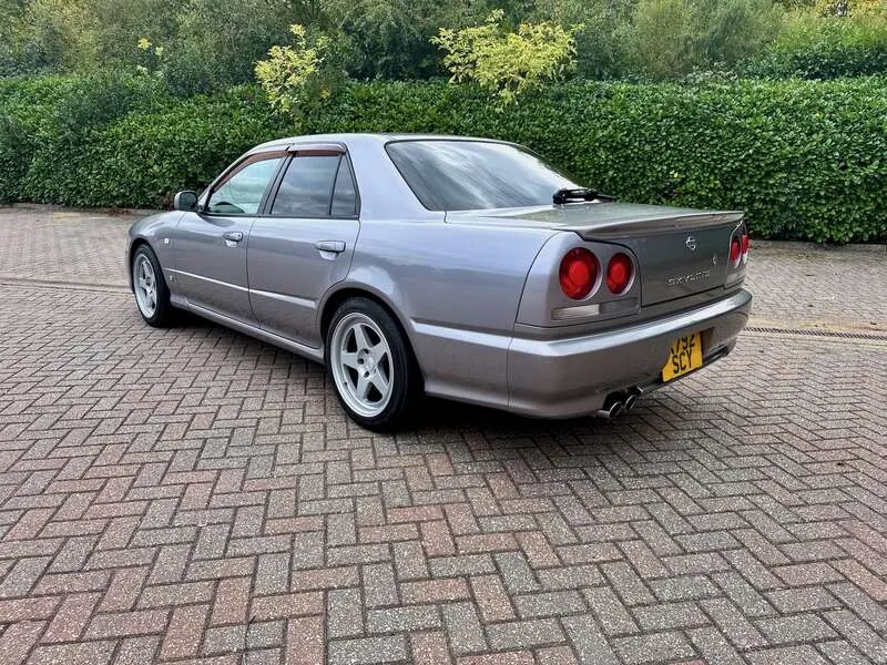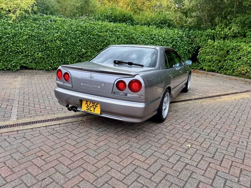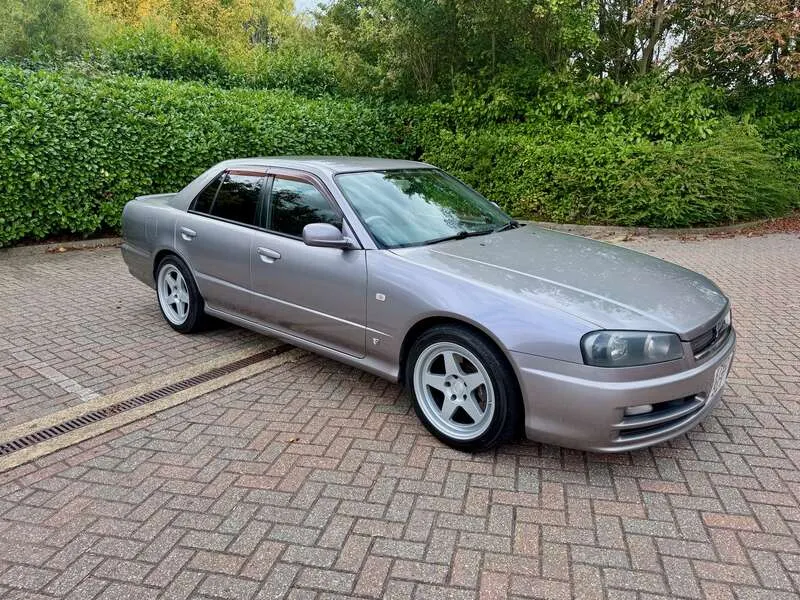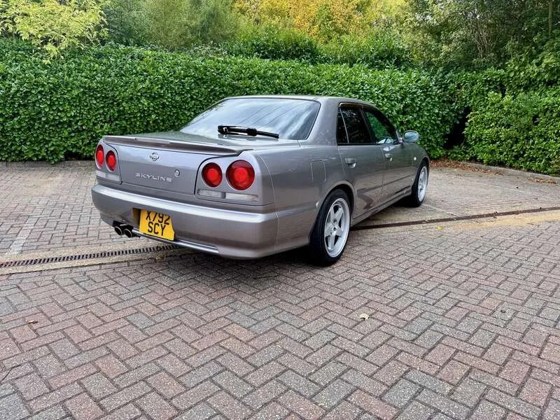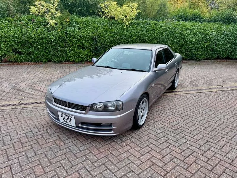 This lot will be auctioned via Iconic Auctioneers, The Classic Sale at the NEC Classic Motor Show 2025 on Sunday the 9th of November, NEC, Birmingham, B40 1NT. A rare, UK-registered example of the R34 Skyline 25GT-V Saloon, freshly MOT’d with no advisories until September 2026 Built and first registered in Japan in September 2000, it remained with one family for 12 years before being imported and UK-registered in February 2024 The odometer currently indicates 108,944km and all key features – air-conditioning, central locking and power-folding mirrors – operate correctly Finished in Nissan’s Athlete Silver (KV2) with two-tone cloth seats, the understated specification and a perfect complement to the saloon body Powered by the naturally aspirated 2.5-litre RB25DE Neo straight-six mated to a 4-speed Tiptronic gearbox, a smooth and robust drivetrain renowned for its reliability Supplied with its original head unit and 6-disc CD changer, now enhanced with Tein Flex Z height and damping-adjustable coil-overs for improved ride and stance Recent maintenance includes a new throttle position sensor, new battery (December 2024), and a service in September 2025 at 108,601km Rolling on Kansei KNP 17” 9J ET35 alloys shod with Falken FK452 tyres showing plenty of tread remaining UK paperwork includes the V5C logbook, MOT certificates, and a UK service book containing three stamps, alongside the original Japanese book pack, owner’s manual and extensive service history — 41 Nissan dealer sheets (2001–2019) plus further records from 2020–2023 Offered with one key and described as a strong, usable R34 Saloon, seldom seen in the UK and particularly well documented