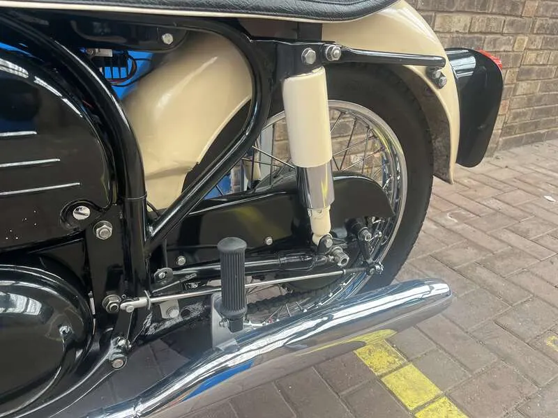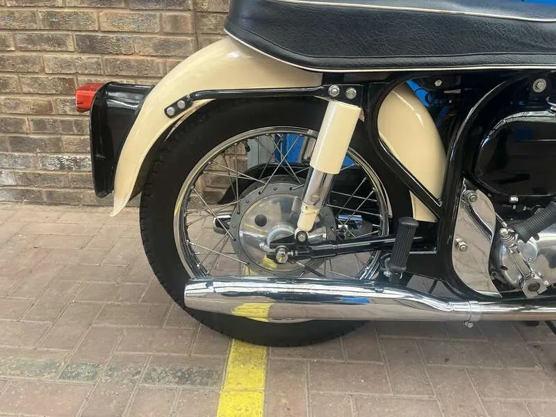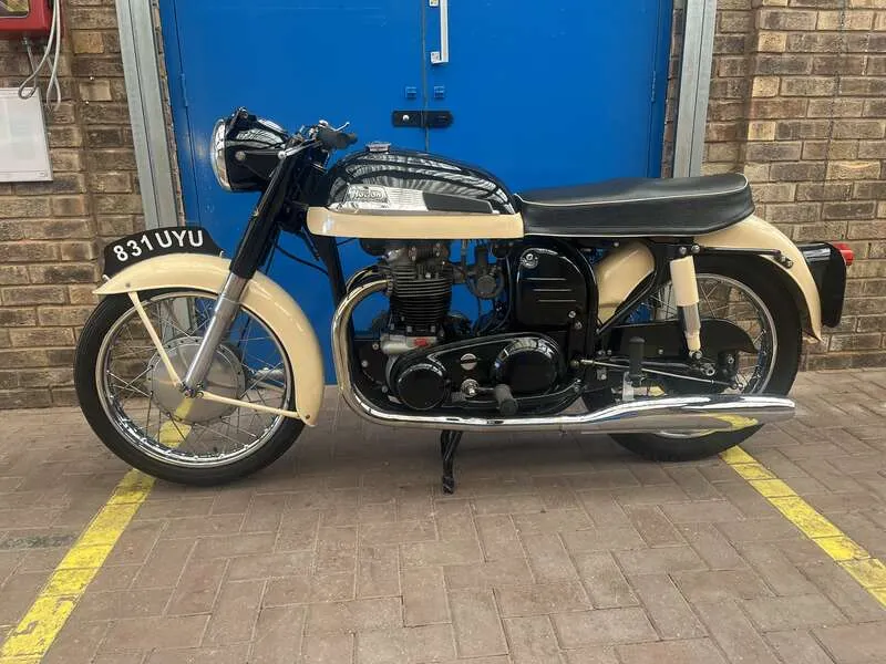 This lot will be auctioned via Iconic Auctioneers, The Iconic Motorcycle Sale at the NEC Classic Motor Show 2025 on Sunday the 9th of November, NEC, Birmingham, B40 1NT. The 99 was essentially a 500cc Model 88 taken out to 596cc and fitted with a new head offering higher compression With 31bhp, the class-leading 'Featherbed' frame and 'Roadholder' forks, the 99 was a very desirable package in period By 1960, the bike typically featured modern alternator electrics and coil ignition, replacing the older magneto/dynamo setup Equipped with a 4-speed gearbox (AMC) and full width aluminium drum brakes front and rear This matching engine and frame numbers example has been with our vendor since 2018 Subject to much expenditure, it presents well in the attractive colour combination of black and cream and benefits from new rims and stainless spokes According to its owner 'The engine runs well, but there is a small wiring problem in the headlamp'. It has been stored for a while and may have 'wet sumped' whilst stood With a reputation for excellent handling and classic British styling, there is a ready market for Norton's handsome Dominator, particularly in this well presented, cared-for condition
