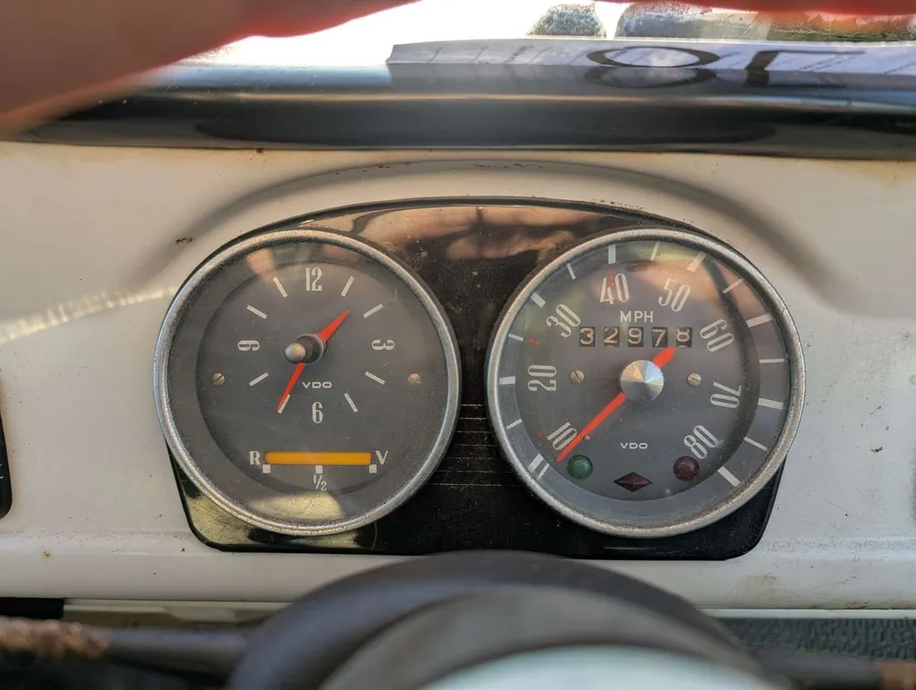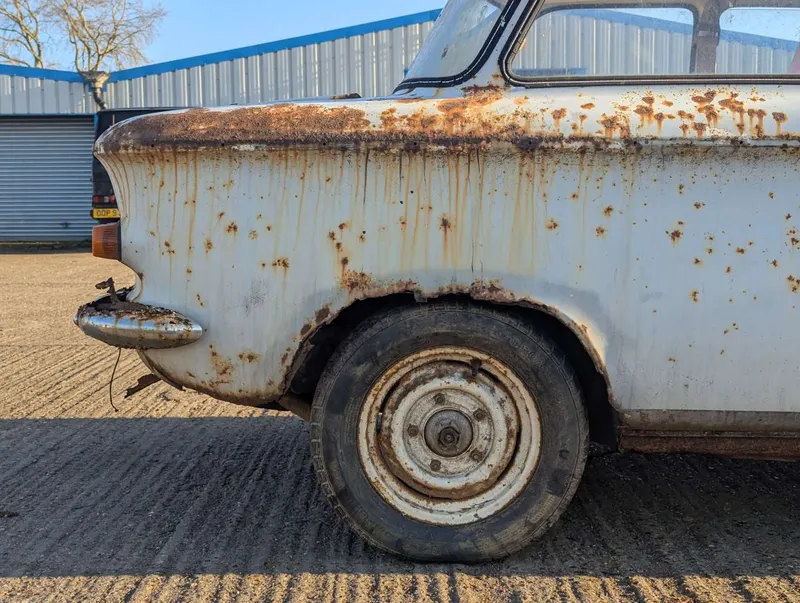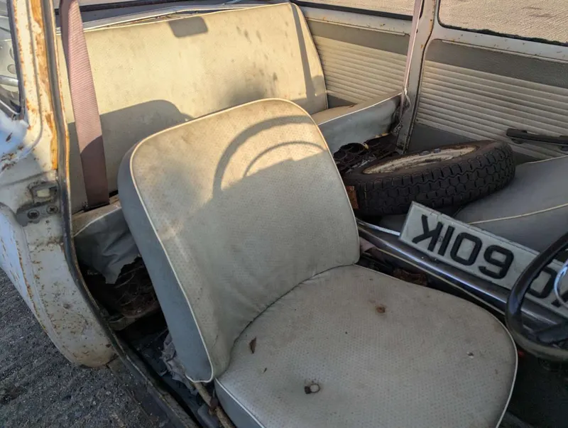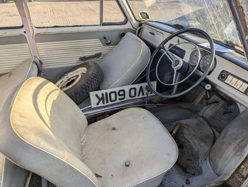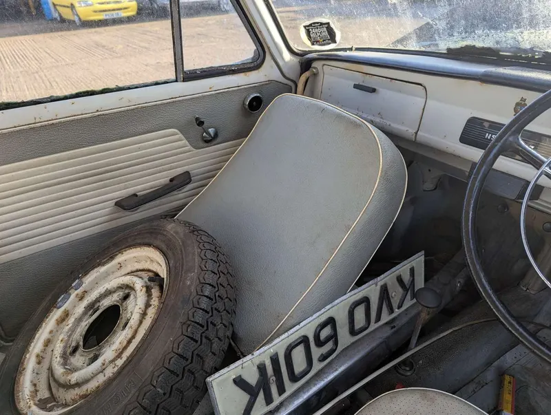 This grey NSU Prinz 4 is an original UK car, accompanied by its buff logbook which reveals that it was first registered in Gloucestershire in March 1963. Its service book contains 8 stamps up to 27k miles, and today the odometer is showing 32,978 miles. Today the car is a non-runner requiring extensive restoration, having been off the road for some years. It comes with various old photos, letters, and a good collection of maintenance receipts which cover the 1970s to the 1990s. These, together with a couple of newspaper cuttings, reveal that the NSU spent its first 35 years with a Miss Winter, who spent most of that period in the Isles of Scilly. The current V5C records 3 former keepers.The registration number is non-transferrable. Not specified