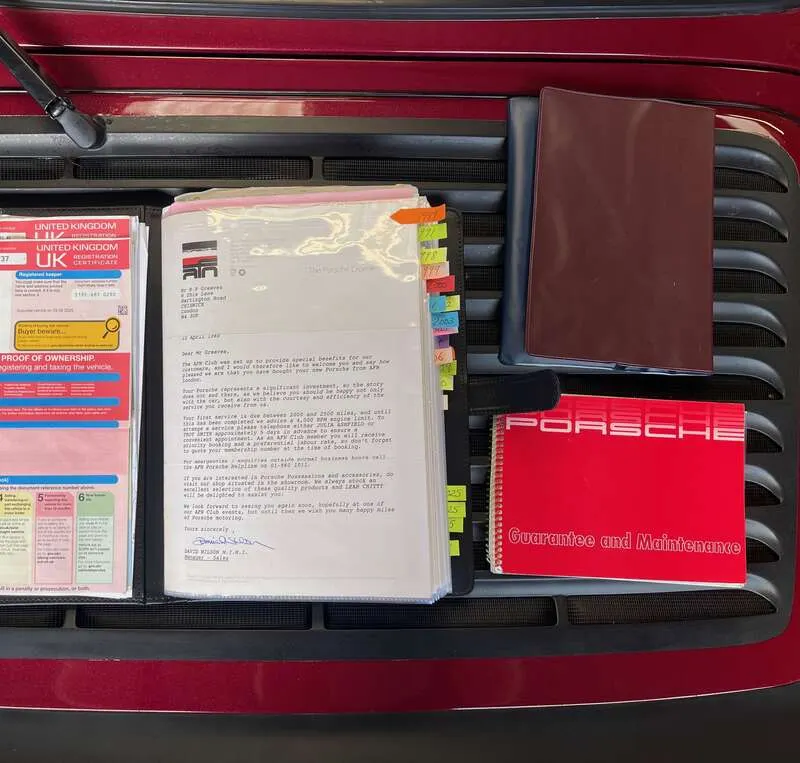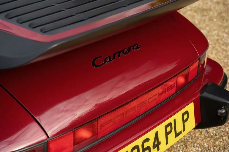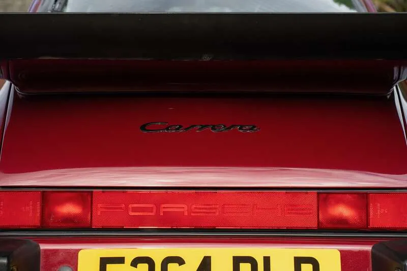 This lot will be auctioned via Iconic Auctioneers, The Iconic Sale at the NEC Classic Motor Show 2025 on Saturday the 8th of November, NEC, Birmingham, B40 1NT. The 3.2 Carrera is revered as the ultimate development of the original 911 that first appeared in 1963. These final cars (before being replaced by the more complicated 964) were the most flexible and usable of Butzi Porsche's original design. Launched in 1984 and reviving the 'Carrera' name for the first time since 1977, these were the ultimate 1980s sports cars. The all alloy, flat-six engine, which had been fuel-injected since 1971, received a final stretch to 3,164cc, giving a torque-rich 231bhp - enough to propel the lithe and slippery coupé to over 150mph, with 0-60mph coming up in 5.6 seconds. Cars built from September 1986 onwards were fitted with the more user-friendly G50 Getrag gearbox, but all 3.2 Carreras feature galvanised bodies, which together with Porsche's legendary build quality, ensure that these classics are long lasting. The car presented here is a C16 (UK-supplied) 1989 model year ('K’ programme) example from the final year of 3.2 production. More specifically, it is a Carrera 3.2 Sport which was a UK-only model and came factory-fitted with a black lip front spoiler, a rear whale tail spoiler, Sports seats (more dished squabs than the basic seats) and Bilstein Sport shock absorbers. Supplied new by AFN Porsche and first registered in the UK on 7th April 1989, this factory Sport-specification car is finished in the rarely seen hue of Velvet Red Metallic and optioned with half leather and pinstripe electric seats, the factory Sound Pack, electric sunroof and rear wash/wipe. It's currently fitted with a Blaupunkt Bluetooth hands-free unit. It's been fully recommissioned after a decade in dry storage, including a photo-documented glass-out repaint, new body seals, sunroof and window seals, heater ducting, fuse board refresh and refurbished, alloys fitted with new Yokohama 002 tyres. Additional mechanical work includes a new clutch fitted in August 2025 at R&D Automotive of Manchester along with plugs/tappet set up, new cam cover gaskets, starter motor and heater controls whilst the engine was out. Again all photo documented. Indicating 127,501 miles (at the time of cataloguing), supported by an extensive history file from new with the original book pack, stamped service book, invoices and old MOTs. The current is MOT is valid until June 2026 and the car is HPI-clear. The Cherished Registration number visible in some of our images does not form part of the sale and the car will revert to its original registration number, F364 PLP. This is a very attractive example of a much sought after 911, well maintained and thoughtfully specified, offered in rare Velvet Red Metallic and accompanied by excellent provenance, making it an appealing prospect for both collectors and drivers alike.
