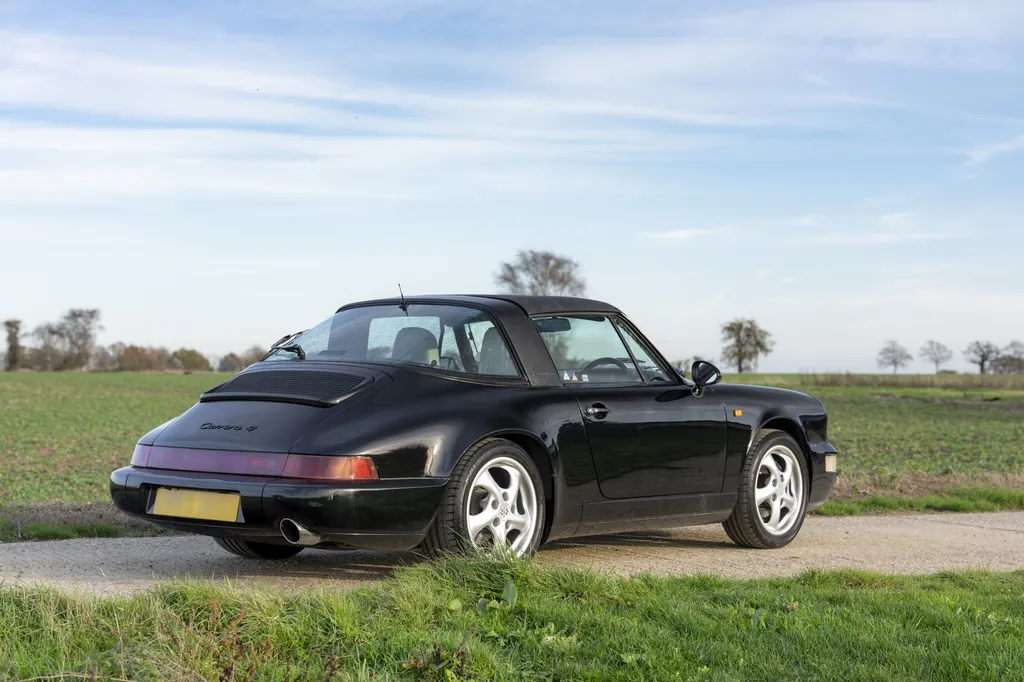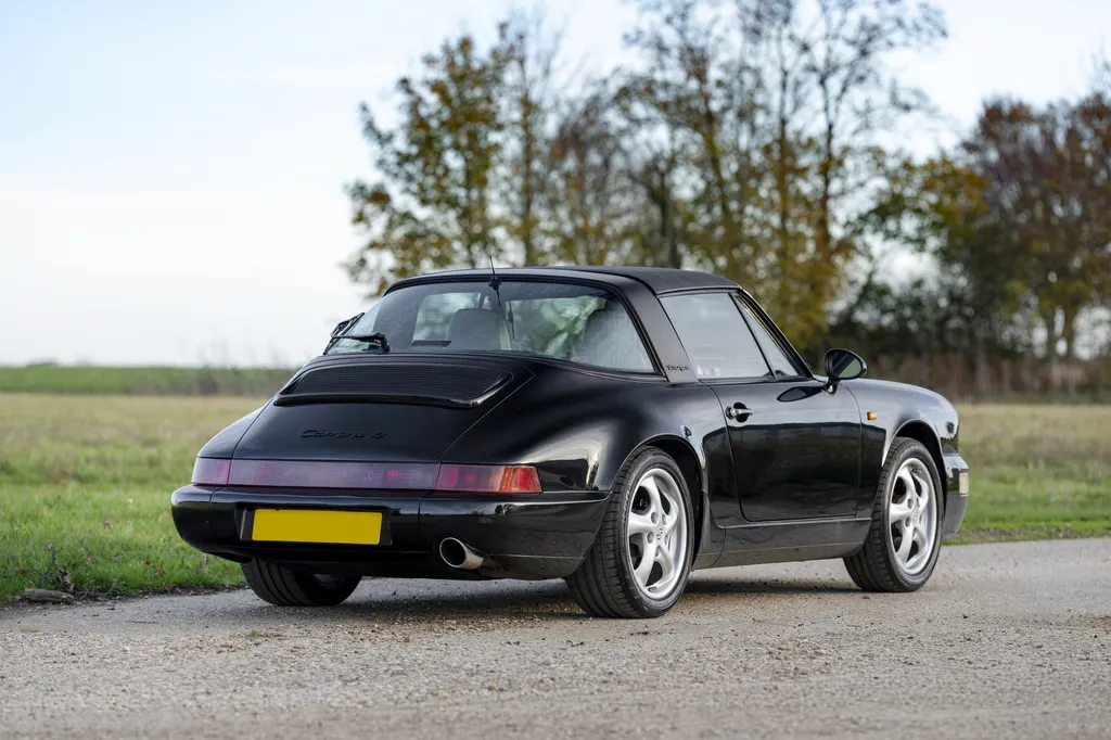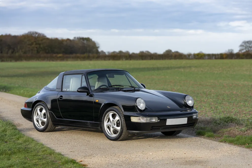 This lovely, rare, right hand drive Porsche 911/964 Carrera 4 Targa fitted with factory five-speed manual gearbox was supplied within the UK in August 1990. Finished in black with the original grey leather interior it has been recently serviced and is supplied with an extensive service history. It is reported by the owner to run and drive very well. This 964 Carrera 4 Targa is supplied with a V5 registration document, an MoT test certificate which expires in February 2026, the handbook pack and a large file containing invoices and old MoT test certificates. Today, a well-preserved right hand drive Porsche 964 Carrera 4 Targa represents a unique blend of classic air-cooled charm, technical innovation, and everyday usability - an iconic bridge between the 911s of the past and the modern performance machines that followed. Consigned by John Tomlin