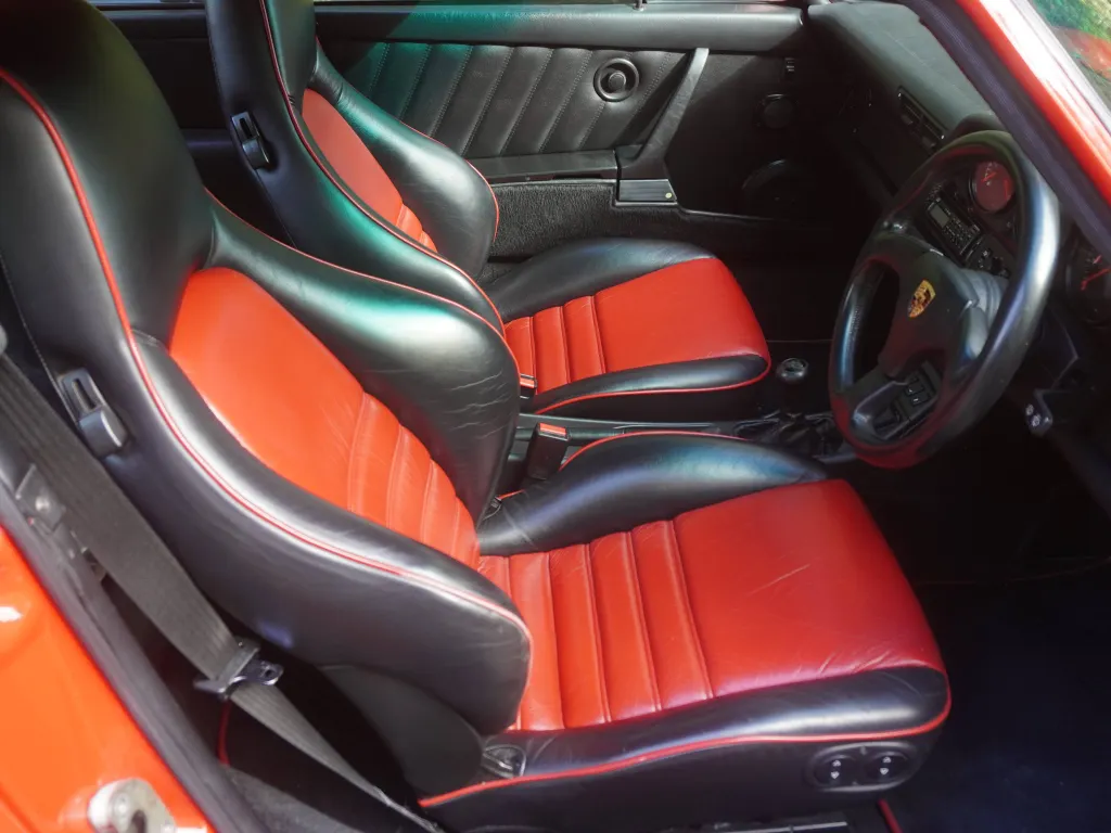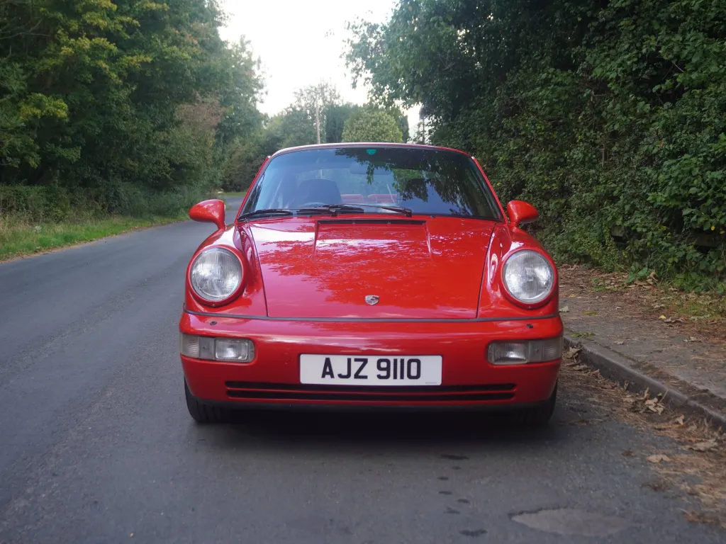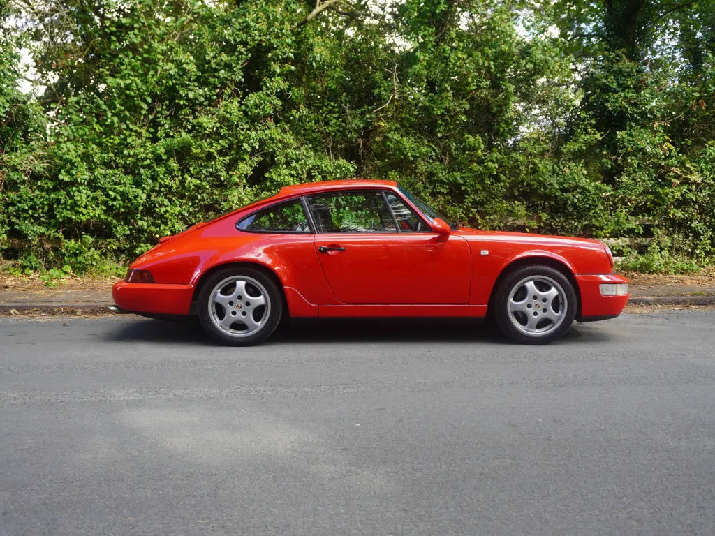 AJZ 9110 is an incredibly sharp, top quality example and it clearly demonstrates how good a 911 964 can be with meticulous ownership and a pristine maintenance record. This Carrera 4 Coupe presents in absolutely fantastic condition for a car with 127,000 miles from new and drives superbly. The 964 was first registered on the 4th of August 1990, supplied new by Swinford Motors. Our Porsche came out the factory finished in Guards Red with manual transmission, air conditioning and sunroof. A very comprehensive history file accompanies the car with MOT certificates and service records going back to the cars first registration. The service book has stamps for service work being carried out at 2000, 14525, 14525,23688, 26235, 39337, 50649, 58123, 30335, 68339, 72271, 77484, 83273, 85370, 90604, 96058, 102464, 108102, 111694, 113560, 118181, and 123144. AJZ 9110 arrived with us having travelled faultlessly from the Hull area by a local customer of ours. Throughout his 16-year ownership, the 964 has been stored in the garage and only been used in fair weather made evident by the condition of the beautiful original paintwork and upholstery. Developments made in the 1989 model year 964 marked a significant evolution from the previous Carrera 3.2, with about 85-87% new components. The re-design including a new chassis, coil-spring suspension which replaced the previous model's torsion bars, power assisted steering, ABS brakes, and a 959-derived AWD system. In the heart of this 911 is a 3.6-liter air-cooled flat-six engine producing 250 hp and 229 lb-ft of torque. In the fashion of a true driver's car, the engine was mated to a 5-speed manual transmission. The fresh formula for the 964 C4 resulted in staggering performance and road holding making it one of the quickest and most forgiving cars to drive of its era. Porsche released performance data of a 0-60 time of just 5.4 seconds and a top speed of 161 miles per hour. The near 30/70 front to rear weight distribution ensured the problematic oversteering tendencies of the 2WD alternative were tamed allowing drivers to safely feel all of the power of the delightful engine. This 964 is all the proof you require of Porsche's ability to produce truly fantastic and reliable motor cars. For the next owner, the 911 will be treated to a full service, air conditioning re-gas, and an MOT.
