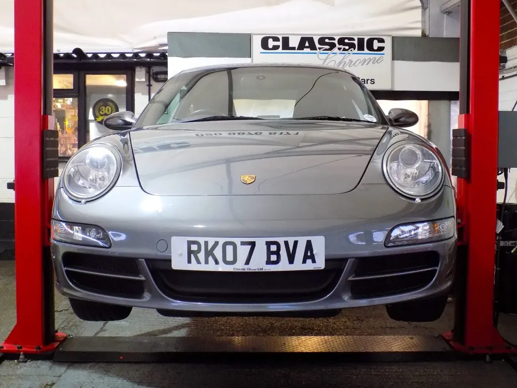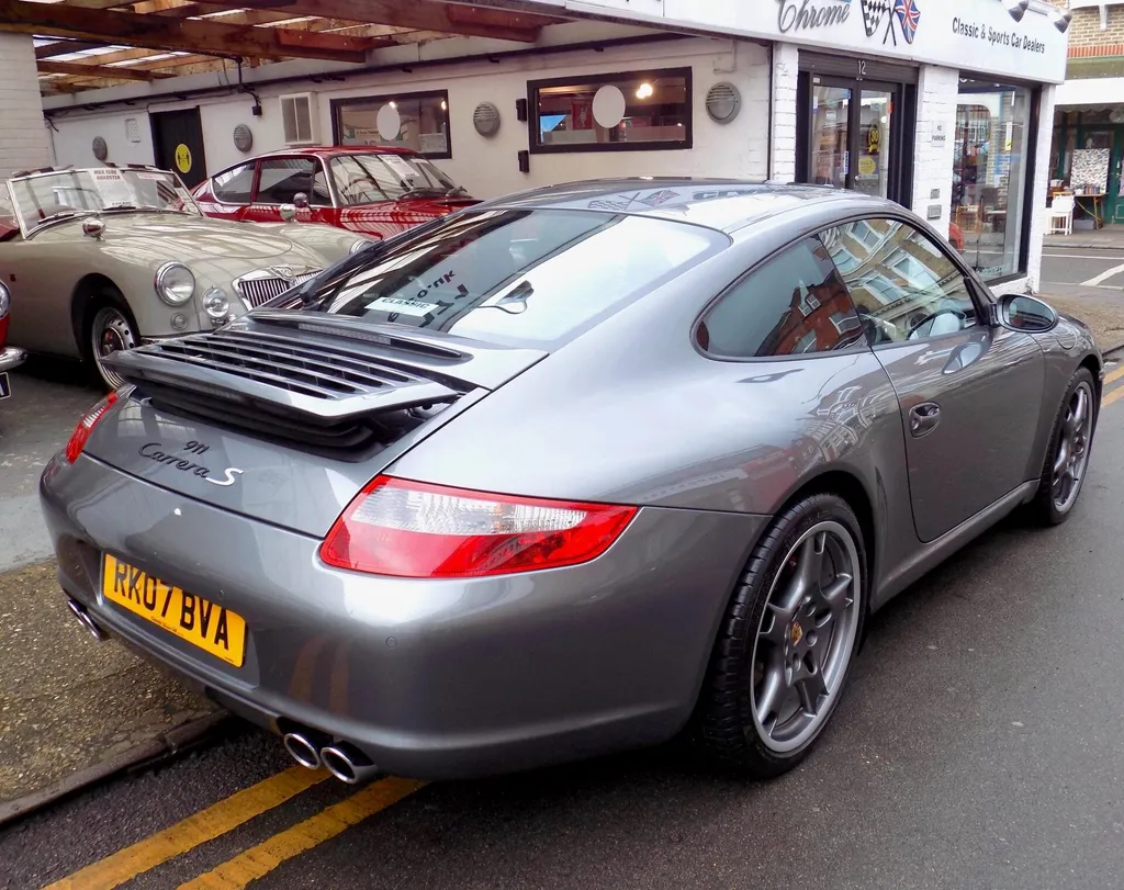 Sold by us in May 2023 to the current owner and coming in for sale in January! Introduced in 2004, The 997 represented a significant relaunch of the 911 that included a major body restyling and interior update, while using much of the rolling chassis of the outgoing 996. The 997 has all the technological improvements of its 996-series predecessor but with a lighter / stiffer body-shell, better suspension/brakes and a superior heating, ventilation and air conditioning system plus the more classical styling. Available in Carrera or Carrera S guises when launched, the latter boasted a more powerful 3.8 litre Boxer engine - rated at 350 bhp/295 lbs ft of Torque, a Sports Exhaust, Porsche Active Suspension Management (PASM) and 19-inch Alloy Wheels as standard. Reputedly capable of 0-60mph in 4.6 seconds and 182mph, it soon became a driver's favourite. Better built and better looking than a 996 and smaller and more agile than a 991 or the current 992, fine examples of 997's are becoming increasingly collectible. This Porsche 911 (997) Carrera S 3.8 Coupe - VIN No: WP0ZZZ99Z7S725053 and Engine No: 68713975 was supplied new by the Porsche Centre in Guildford and was first registered to its first owner on 30th March 2007. It is finished in the beautiful Seal Grey Metallic with a Black Leather interior and has the 355bhp 3.8 Litre Flat 6 Fi Engine, a 6 Speed Manual Transmission, Air Conditioning, Heated Leather Seats, Red Brake Calipers and sitting on a set of 19'' Seal Grey Carrera Classic Alloy Wheels with a brand new set of Michelin Pilot Sport Tyres. It has a great specification and includes the following Porsche Optional Equipment: PCM navigation module, Bose sound system, Wheels painted in exterior colour, Park Assist, Seat heating, Rear wiper (with aero blade), Stainless steel tailpipes - chrome-plated. This car has only had 4 previous owners and has now covered a genuine and very low 52,667 Miles from new with a Full Service History from Porsche in Guildford, Porsche Centre Wolverhampton and specialists Braunton Engineering in Devon, Cotswold Porsche and most recently a full service by RGA Porsche in Vauxhall, London in May 2025 @ 52,470 miles. The car drives beautifully and it really is a fantastic example in arguably one of the nicest colour schemes. It is clear on all HPi Registers including the National Mileage Register and comes with 2 sets of Keys, its original Porsche Leather wallet with all books and manuals, lots of invoices, full specification sheets and MOT history. Upon sale the car will come with our own 6 Month Mechanical Warranty which can be upgraded and extended at additional cost if required. It is of course ULEZ compliant! A full set of photographs and a video will follow upon completion of our showroom preparation. Photo's shown are from June 2023. Car will be on display @ our showrooms in Mortlake, South West London in mid January. NB: Classic Chrome Ltd make every effort to ensure that the information in this advertisement is accurate and all statements as to provenance and condition are given as opinions only. When describing any car that is more than 20 years old, we sometimes have to rely on the car’s history file and any information provided by the previous owner(s). This information in passed on in good faith and is therefore not purported to be a statement of fact. Any prospective purchaser must satisfy themselves as to the condition and fitness for use of the vehicle. This does not affect your statutory rights. Air Conditioning, Adjustable Steering Column, Electric Seats, Electric Windows, Front Spot Lights, Headlight Washers, Heated Door Mirrors, Heated Glass Rear Window, Heated Seats, Multi-Function Steering wheel, Rear Parking Sensors, Power Assisted Steering, Rear Windscreen Wiper, Remote Central Locking, Sat Nav, Satellite navigation system with Bluetooth® connectivity, Xenon Headlights, Vanity Mirrors, Steering Wheel Controls, Bose Sound System, Porsche PCM, 19'' Carrera Classic Alloy Wheels., Bluetooth & iPod connectivity, Electric Mirrors, Park Assist, Leather Sports Seats, Leather Trim, Leather Steering Wheel, Electric & Heated Seats, Stainless Steel & Chrome Pack, Anti-lock Brakes, Drivers Air Bag, Electronic Brake Distribution (EBD), Electronic Stability Programme, Electronic Traction Control, Front Disc Brakes, Heated Front & Rear Screens, Front Fog Lights, High Mount Brake Light, Isofix child seat restraint mechanism, Multiple Air Bags, Porsche Stability Management (PSM), Passengers Air Bag, Power Assisted Brakes, Rear Disc Brakes, Rear Seat Belts, Ventilated Disc Brakes, Traction Control, Stability Control, Space-saver Wheel, Central locking, Factory fitted Alarm, Immobiliser, 6 Speed Manual Gearbox, Rear Wheel Drive, Power Assisted Steering, ULEZ COMPLIANT, Original Porsche Tool Kit, Warning Triangle, Sports Exhaust System