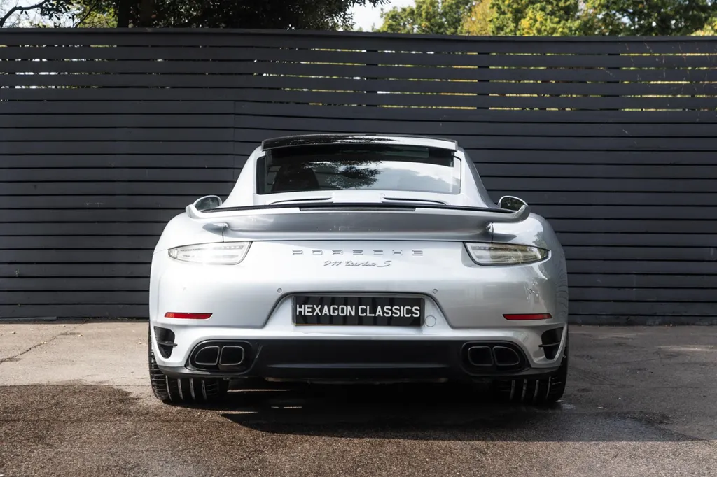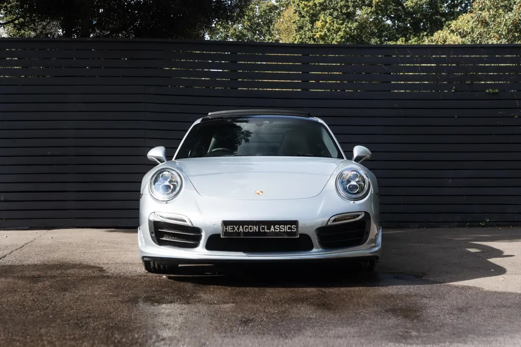 FACTORY SPECIFICATION INCLUDES :- 7-SPEED PDK GEARBOX, ELECTRIC GLASS SUNROOF, 18-WAY ELECTRICALLY-ADJUSTABLE SPORTS SEATS PLUS WITH CREST EMBOSSED HEADRESTS, EXCLUSIVE WHITE INSTRUMENT DIALS, ELECTRICALLY-ADJUSTABLE STEERING COLUMN, PCCM CERAMIC BRAKES, LIGHT DESIGN PACKAGE WITH PDLS AND HIGH BEAM, PCM NAVIGATION 3 SYSTEM WITH APPLE CAR PLAY UPGRADE, DAB RADIO, BOSE HI-FI, ALUMINIUM PEDALS, DYNAMIC ENGINE MOUNTS, ALCANTARA HEADLINING, BOSE HI-FI, SPORTS STEERING WHEEL WITH PADDLESHIFT, ALCANTARA HEADLINING, DYNAMIC ENGINE MOUNTS, 20” TURBO S ALLOYS WITH CENTRE-LOCK, PTV PLUS, HOMELINK, REAR AXLE STEERING, PARK DISTANCE CONTROL FRONT AND REAR, CRUISE CONTROL, SPORTS DESIGN EXTERIOR MIRRORS, RAIN SENSOR, EXCLUSIVE PORSCHE AERO KIT, CARBON DOOR PANEL TRIMS, CARBON DOOR LOGO ENTRY GUARDS, CARBON DASHBOARD TRIM, CARBON CENTRE CONSOLE TRIM, ALUMINIUM LOOK FUEL FILLER CAP AND TOP TINTED WINDSCREEN. IT HAS ALSO BEEN TREATED TO FULL PPF (PAINT PROTECTION FILM) AND IS FITTED WITH A META TRAK TRACKER SYSTEM. Combining everyday usability with staggering performance, the Turbo S represents the pinnacle of Porsche’s engineering know-how. Evo magazine commented, “The Porsche 911 Turbo, traditionally the ultimate indomitable everyday supercar, might seem at risk from the latest crop of increasingly rounded rivals and new turbocharged entry level 911’s, but the Turbo’s appeal is much like that of a black Armani suit; expensive, sophisticated and timeless. The 911 Turbo was first released in the 1970’s, but has evolved from the edgy, intimidating sports car it was into the polished and sophisticated everyday supercar of today. The seven-speed PDK is almost undetectable in its shifts. And it works just as well when you haven’t got the pedal planted to the floor. It always seems to be in the right gear and can shift up to sixth or seventh without you even noticing. It’ll kick down quickly when overtaking. Roof down, with the sun shining, the great gearbox helps to make the Turbo S a surprisingly good cruiser. The ride is quite stiff, but it feels extensively engineered enough to never crash noisily into potholes or over bumps. Put up the electrically operated wind deflector and a motorway journey is easy.” Powered by a 3.8-litre twin-turbocharged flat-six producing 560 hp, the Turbo S rockets from 0–62 mph in just 3.1 seconds and continues to a top speed of 197 mph. Mated to Porsche’s acclaimed PDK transmission and active all-wheel drive system, this example offers relentless pace alongside precision handling and security in all conditions. Supplied by Porsche Centre Kendal in November 2013, each of the six services has been carried out by Official Porsche dealers, with the last major service, drive belt check and brake fluid change completed in October 2025. It has its original driver book pack, and spare remote key. This example is accompanied by the added peace of mind of an extended warranty until November 2026, ensuring comprehensive cover. Available to view now at our London showrooms.