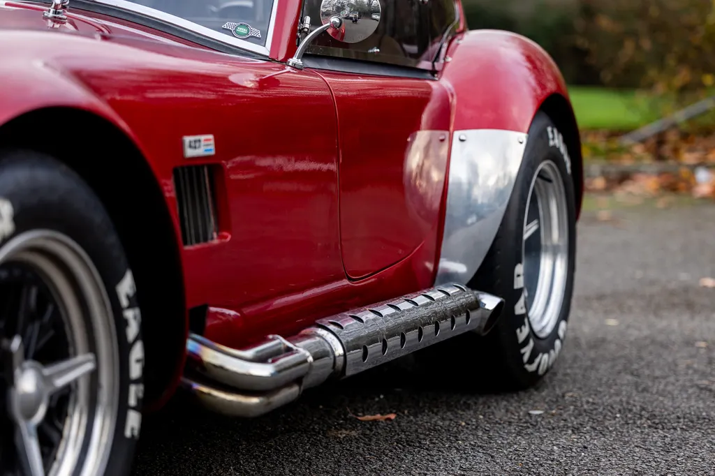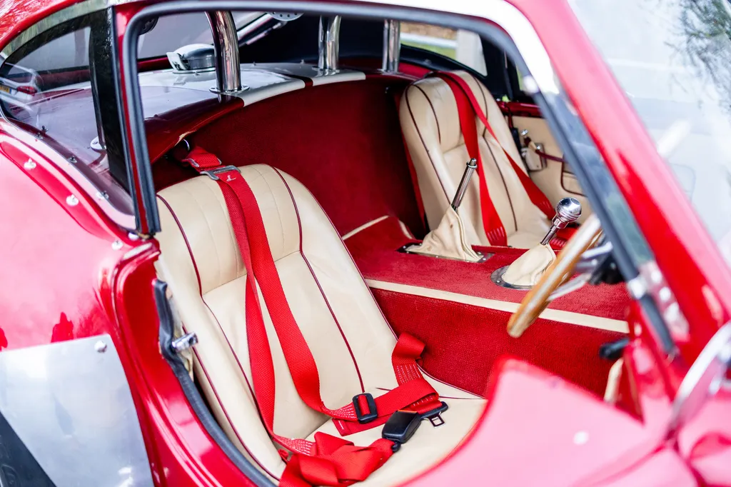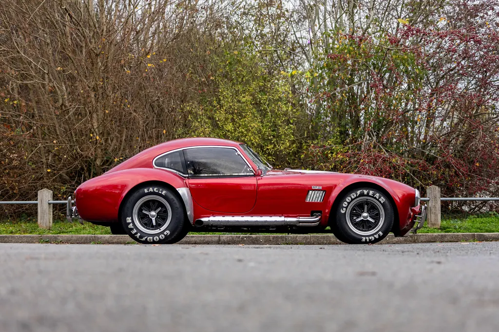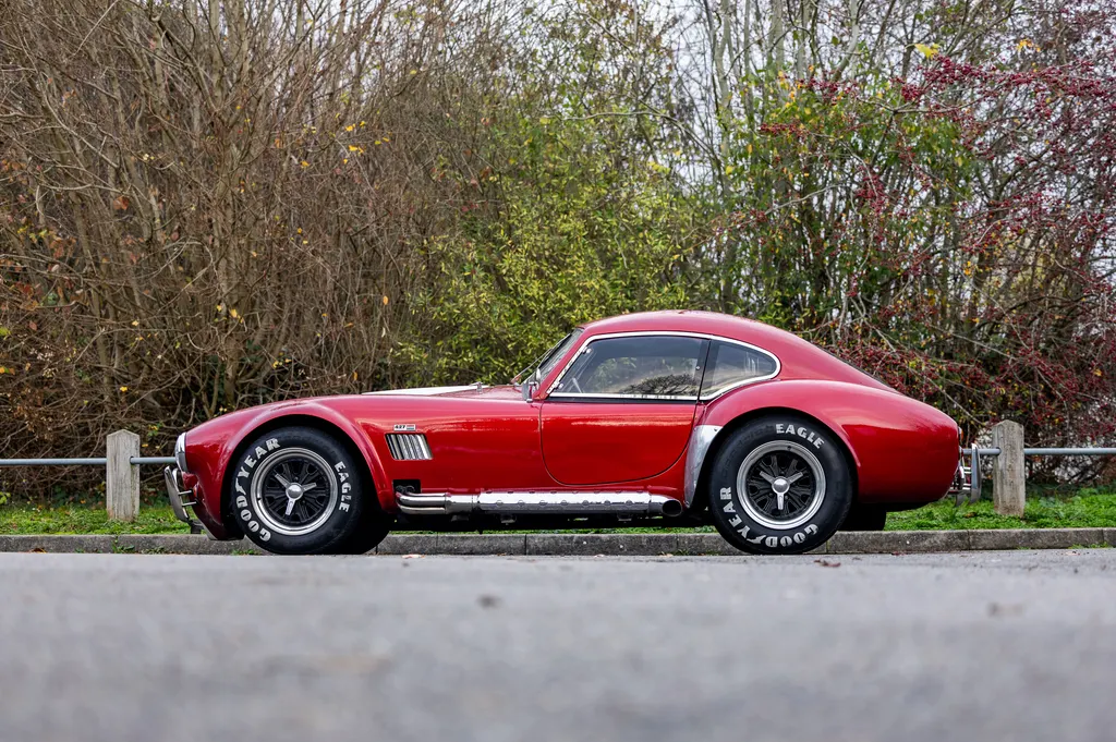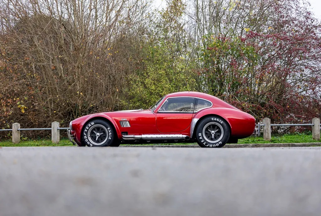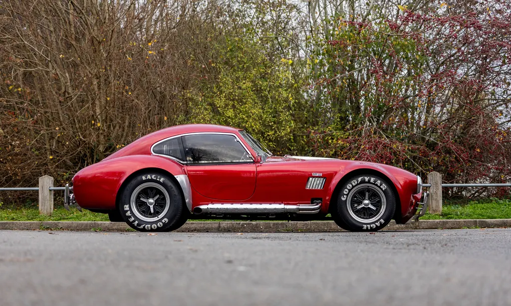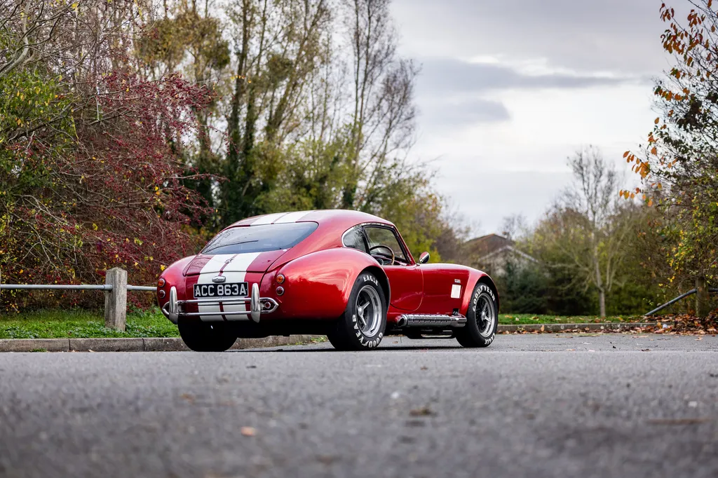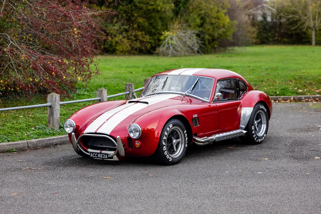 This RAM engineering AC Cobra was first registered on 1st September 2000 and is presented in a stunning deep metallic Nightfire Red with the iconic white stripes. It has a twin four into one side exit exhausts which accompanies a Mike Huddart racing supplied 350ci 5.8 litre Chevy engine and 3.88.1 LSD twinned to a T5, five speed box equating to 350bhp. This example is accompanied by a tonneau, red mohair hood and the achingly pretty 427 Le Mans hardtop which, when fitted, provides a fabulous silhouette providing year-round motoring if you're brave enough to take it out in the winter with that power under the right foot. Sitting on polished 16-inch Halibrand wheels and iconic big Goodyear tyres, the car also has P700 headlamps, lovely cream leather trim with deep red carpets and is described as 'fully loaded' for a RAM cobra with every option ticked when built. With a chassis designed by Adrian Raynard of F1 fame and the RAM cobra the only evocation authenticated by Carroll Shelby, this is a fantastic looking, sounding, driving weapon also offered with the private plate! Consigned by Mathew Priddy.