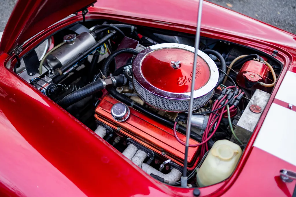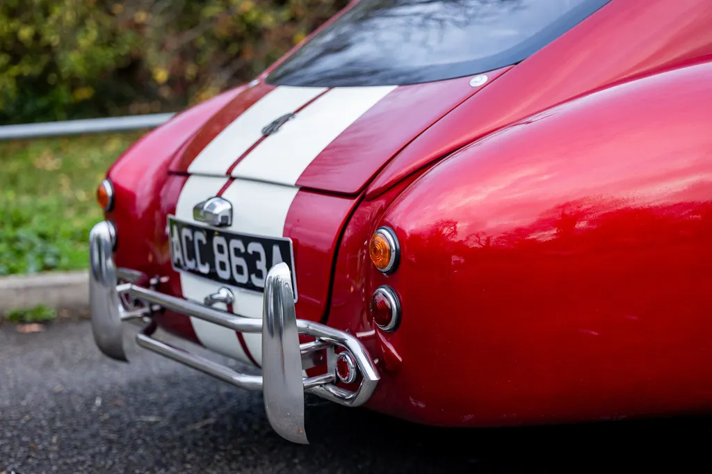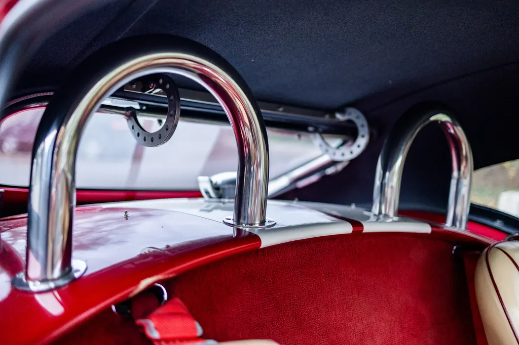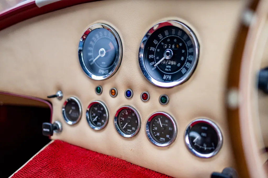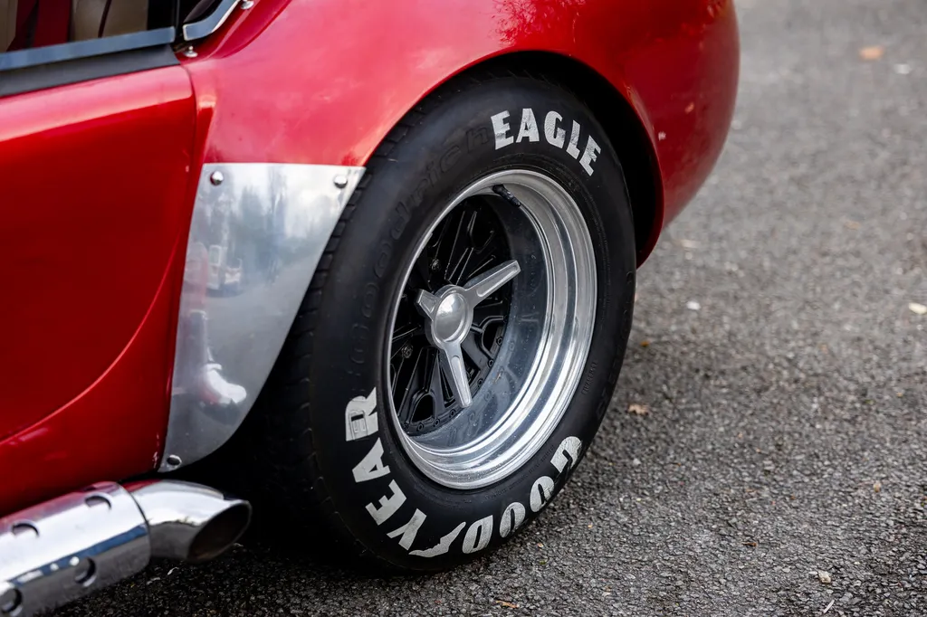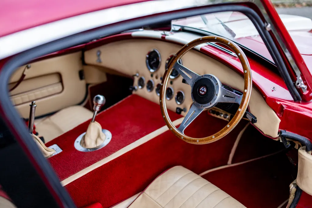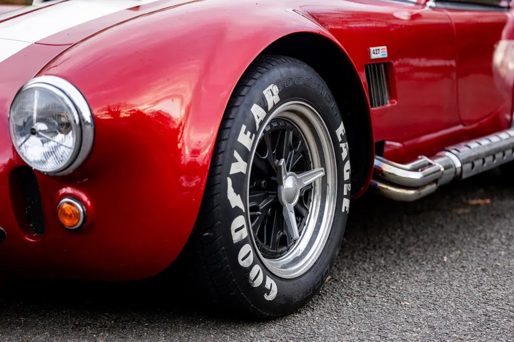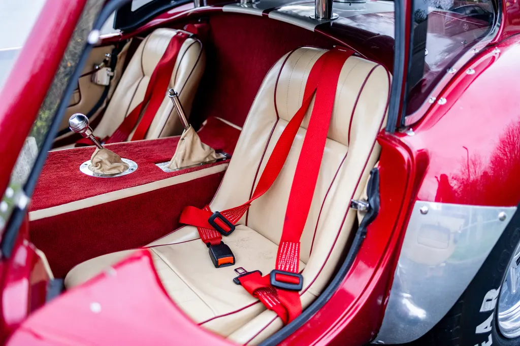 This RAM engineering AC Cobra was first registered on 1st September 2000 and is presented in a stunning deep metallic Nightfire Red with the iconic white stripes. It has a twin four into one side exit exhausts which accompanies a Mike Huddart racing supplied 350ci 5.8 litre Chevy engine and 3.88.1 LSD twinned to a T5, five speed box equating to 350bhp. This example is accompanied by a tonneau, red mohair hood and the achingly pretty 427 Le Mans hardtop which, when fitted, provides a fabulous silhouette providing year-round motoring if you're brave enough to take it out in the winter with that power under the right foot. Sitting on polished 16-inch Halibrand wheels and iconic big Goodyear tyres, the car also has P700 headlamps, lovely cream leather trim with deep red carpets and is described as 'fully loaded' for a RAM cobra with every option ticked when built. With a chassis designed by Adrian Raynard of F1 fame and the RAM cobra the only evocation authenticated by Carroll Shelby, this is a fantastic looking, sounding, driving weapon also offered with the private plate! Consigned by Mathew Priddy.