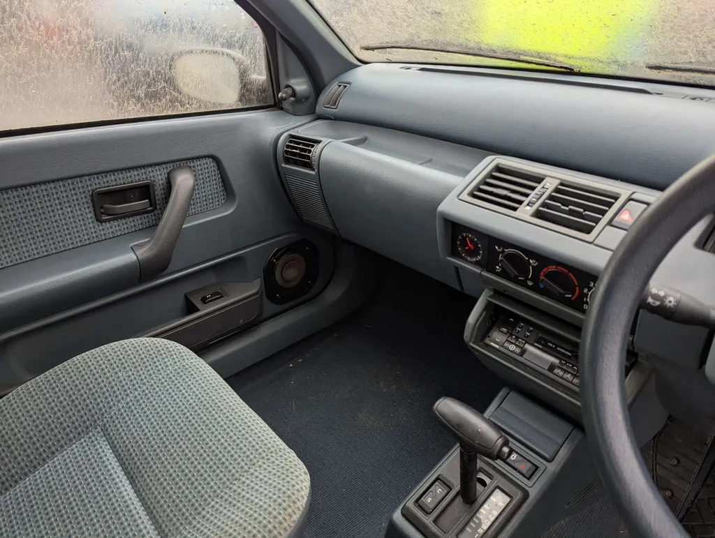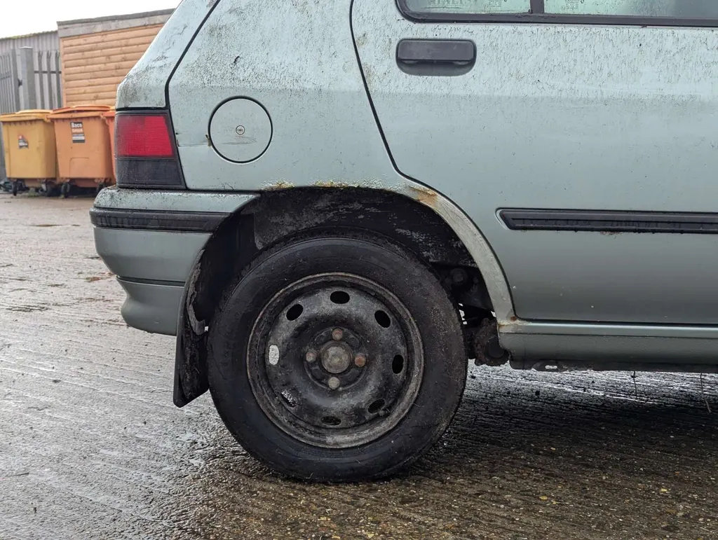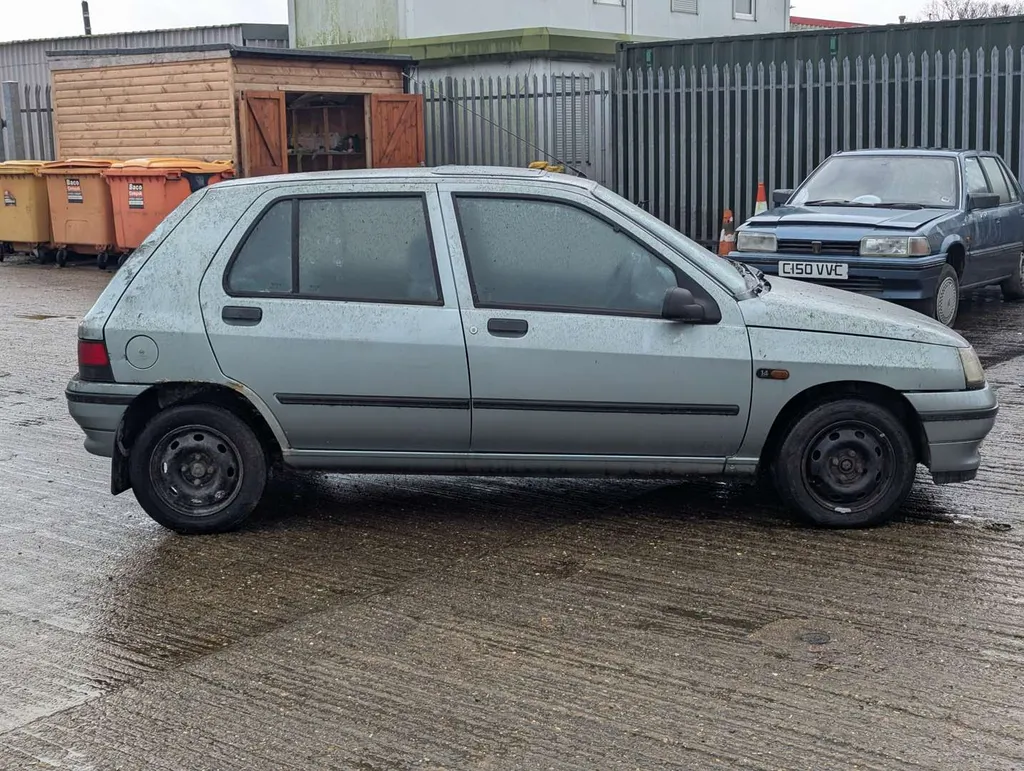 This Renault Clio RT is showing 61,937 miles on its odometer, and there have been 3 registered keepers from new. The interior features well-preserved blue cloth seats, automatic transmission, and sunroof. However, the car has been in storage for some years and its last MoT expired in 2014, so it is being sold as a non-running project for restoration. It comes with a stack of sundry maintenance receipts, owner's handbook pack, and a service log book which indicates 9 services, the latest being at 61,559 miles in 2013. The next owner will need to apply to the DVLA for a new V5C. Not specified