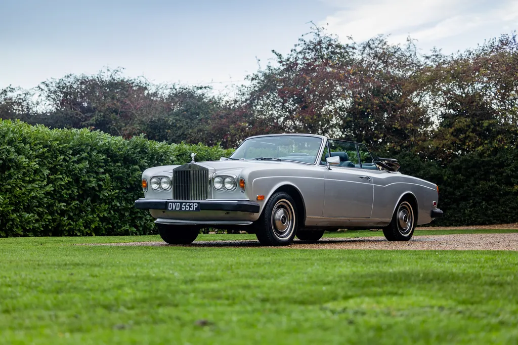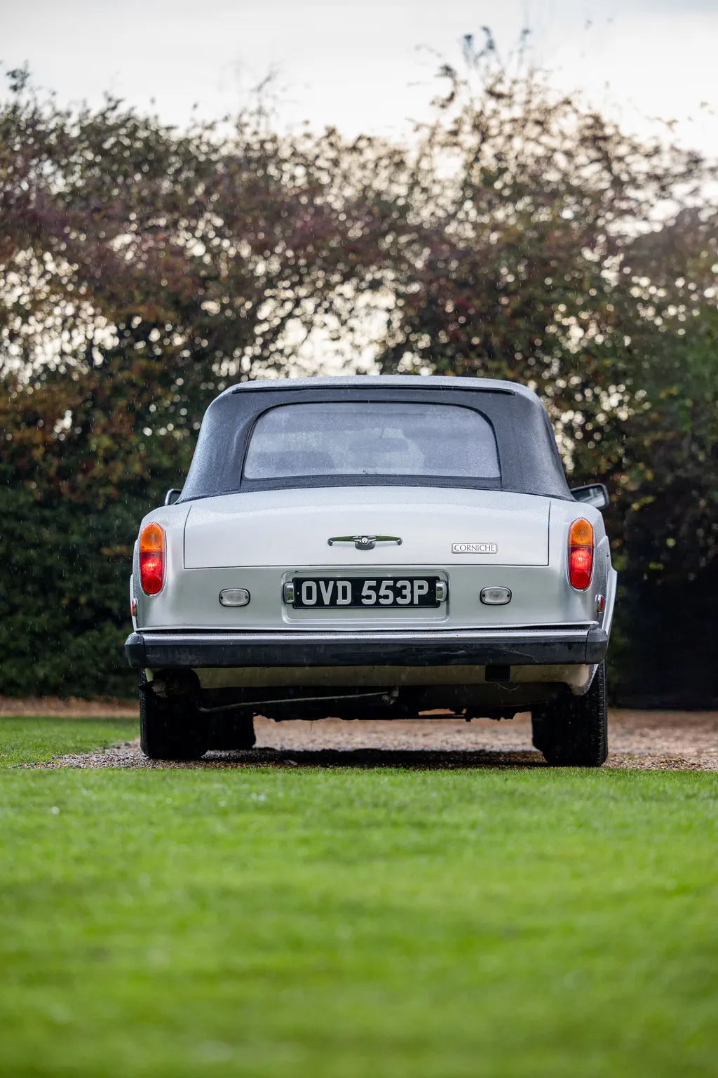 First registered in the 1976, this example is delightfully understated in metallic silver with blue full leather trim, matching carpets with a black soft top and walnut dashboard and door capping. Repatriated from the US in May 2010, it was immediately granted an MoT test certificate with an odometer reading of 59,899 and used on the road until 2013 by its owner Mr Driver in Plymouth, it donned the promenade and harbour before being laid up for most of the last decade in an underground car park. Recently, the virtues of such a handsome cars have once again been realised, and a light recommissioning has taken place along with a mechanical overhaul of the brakes which, as we all know, is a necessity for these beautiful dropheads. Benefitting from historic vehicle status and being road tax and MoT exempt, this left hand drive example is perfect for UK based or European adventures. Corniche convertibles are collectable, elegant and luxurious with the very best selling for six figures. Consigned by Mathew Priddy