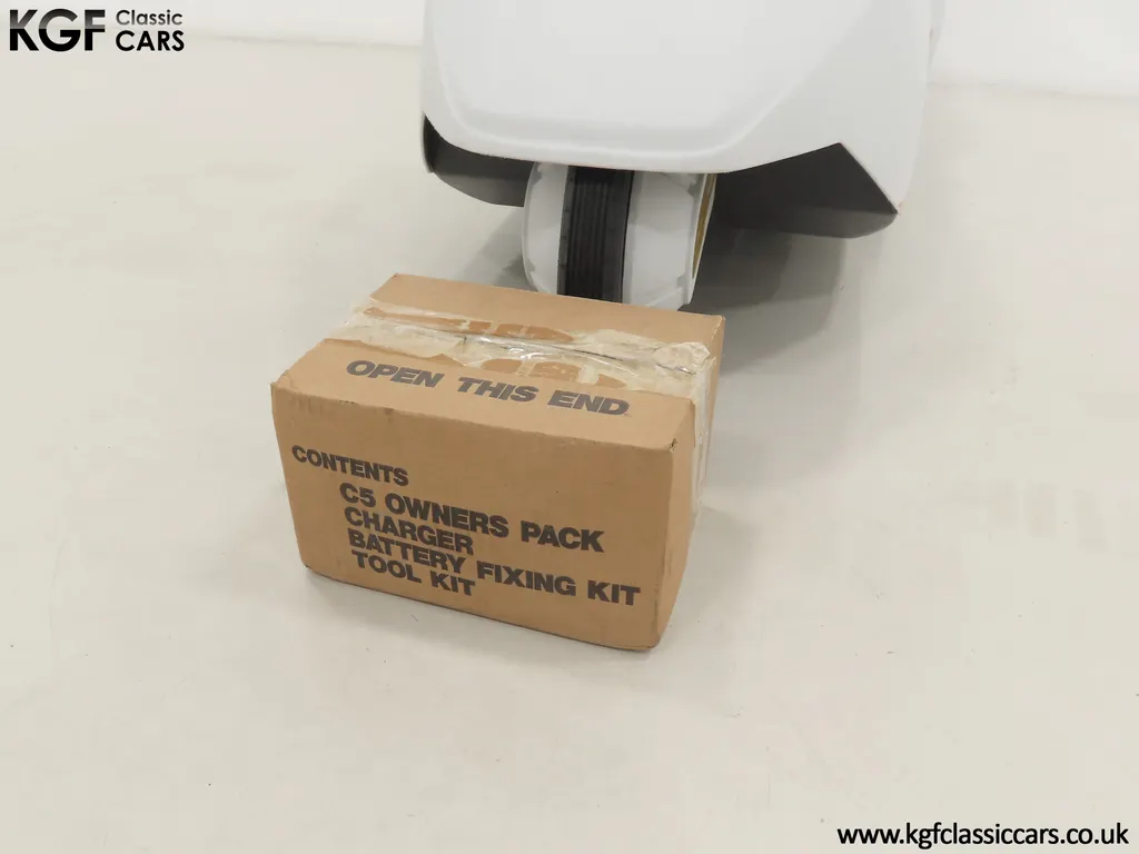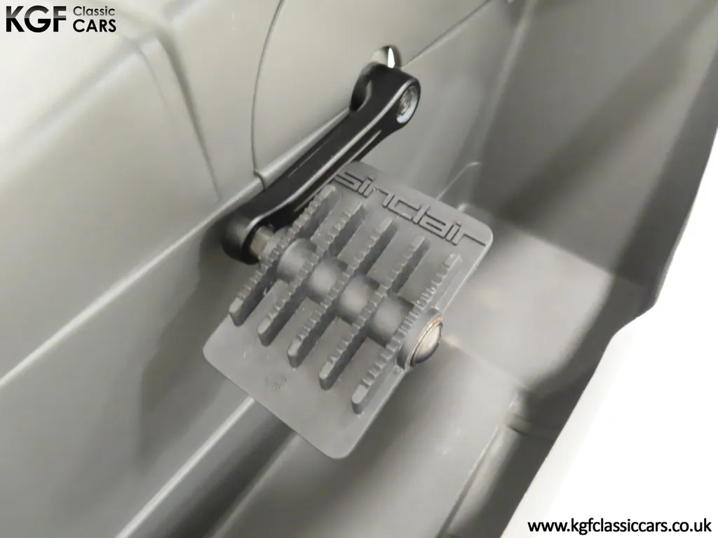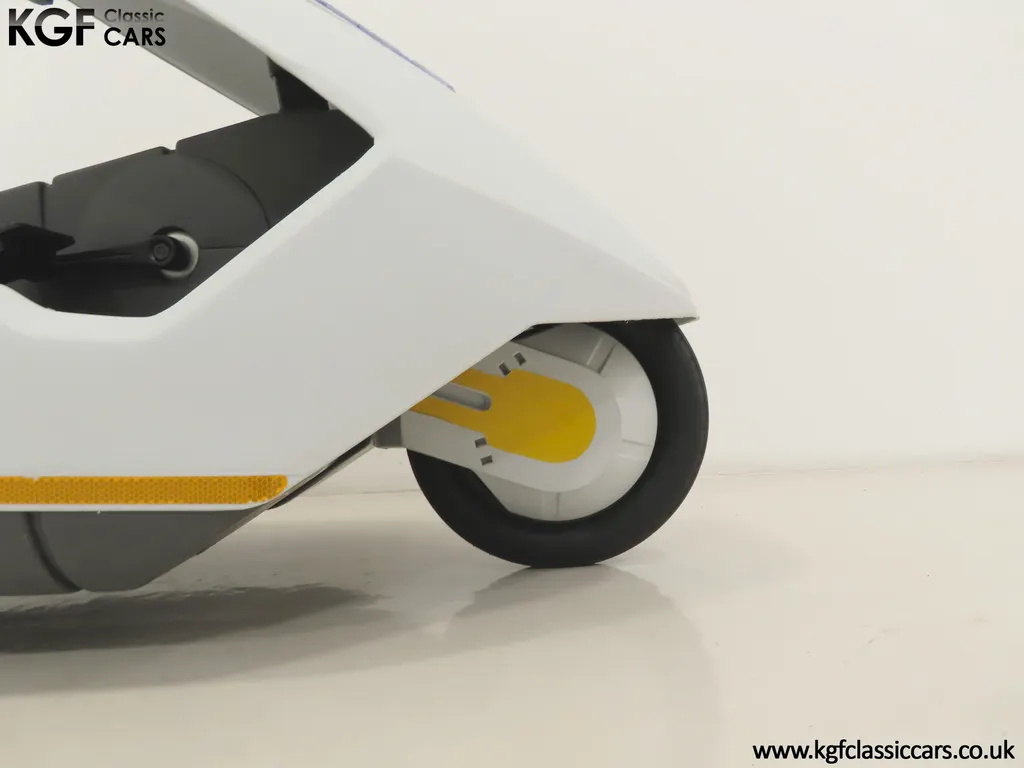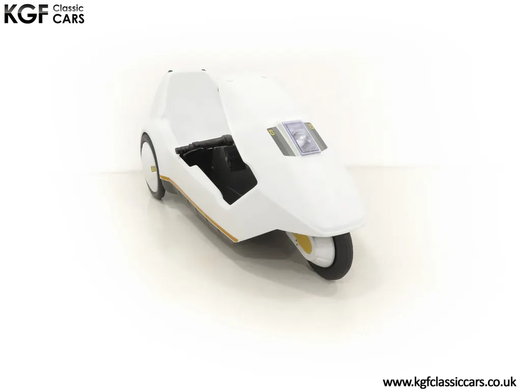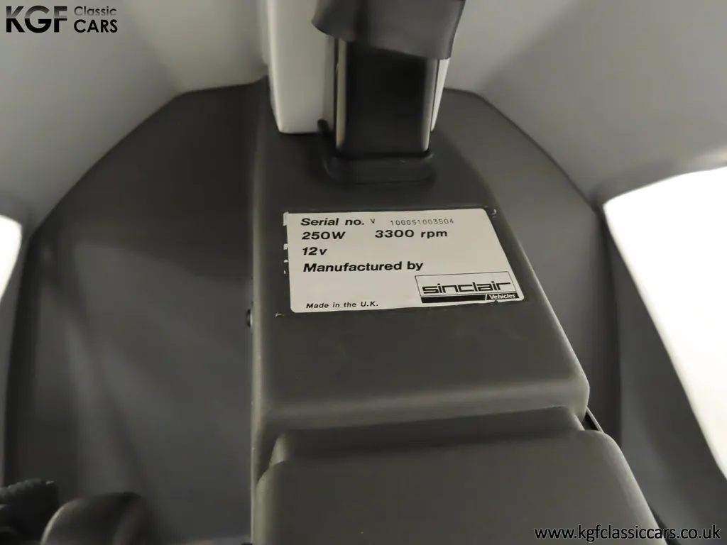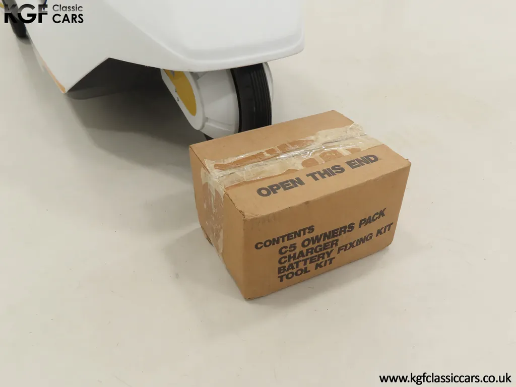 FOR SALE A revolutionary Sinclair C5 unused on display with boxed owner’s pack. MODEL HISTORY Launched on the 10th January 1985 this electric single seater was a completely new form of personal transport and a world first for Sir Clive Sinclair. Claims of 1000 miles for the price of a gallon of petrol, a range of up to 40 miles with an optional second battery and ability to be driven by anybody over 14 without a licence or road tax all for highly competitive £399 inc VAT, seamed enticing. A special launch show at Alexandra Pavilion on the weekend of the 12-13th January 1985 was poorly timed with cold wet British weather highlighting its limitations of a battery that ran down quickly, a maximum speed of only 15 miles per hour and lack of weather proofing. Combined with safety concerns of being dwarfed by vehicles on the road, poor reviews followed and within three months of the launch, production had been slashed by 90%. Sales never picked up despite Sinclair's optimistic forecasts and production ceased by the end of 1985. Out of 14,000 C5s made, only 5,000 were sold before its manufacturer, Sinclair Vehicles, went into receivership. Thousands of unsold C5s were purchased by investors and sold for hugely inflated prices, as much as £6,000. Enthusiasts have established owner’s clubs and newer batteries have now extended the range. No matter if you think of the C5 as a curious oddity and national flop or a serious alternative in personal transport, one thing is for sure, they are great fun and a cult classic! EQUIPMENT Aerodynamic injection moulded polypropylene body, specially coated steel backbone chassis designed by Lotus Cars, lamps, padded steering bar, all-round reflectors, key operated ignition switch, LED microprocessor display units, built-in boot, power activated push switch, powerful front and rear brakes, range and performance improving pedals. Boxed Owners Pack containing: Charger, battery fixing kit, tool kit. EXTERIOR Designed by Sinclair, styled by Guy Desbarats, (a graduate of the Royal College of Art), and developed and tested by Lotus Cars, the C5 could run at the speed of an Olympic sprinter, or so claimed the press release! The distinctive and smartly styled polypropylene body is in remarkable condition having never been ridden in 40 years! All plastic lamp lens covers are immaculate with the rear unit still having the quality assurance inspection sticker attached! The seating area is virtually unmarked with the serial number sticker still attached to the frame. The high-intensity reflective tape produced by 3M has come unstuck in small areas but a replacement OEM roll is included. The lockable white boot area, (only found on later models), is clean with the Hoover service information sticker still attached and the underside is beautifully preserved. MOTOR & TRANSMISSION The C5’s 250W 12v motor is one of the few non-British components, supplied by the Italian firm, Ploymotor, a subsidiary of Philips. Specifically designed and lightweight, the maximum power-assisted speed is 15 mph. The drive to the Torrington made tubular step-swaged rear axle is taken through an epicyclic reduction gearbox which incorporates glass reinforced nylon gears. Drive transfer is by a toothed belt to one wheel. This example has never been ridden and is being sold for display purposes only. WHEELS, TYRES & BRAKES The wheels were specially designed for the Sinclair C5, moulded from glass-reinforced nylon. The front is 12.5-inch diameter and the rears 16-inch shod in correct Sinclair rubber tyres. Powerful front and rear brakes are operated by cycle type brake levers engineered to avoid locking of the front to ensure straight-line braking in all conditions. HISTORY FILE Such a controversial vehicle that it has now become a cult classic! This particular example was built in October 1985 at Hoover’s Merthyr Tydfil facility towards the end of C5 production. It was owned by the late Charles Snarski, a well-known expert in C5 circles and resided in his personal collection before being purchased by one further keeper in 2019. Only ever on display, it remains unused to this day still with its boxed and unopened C5 owners pack! Supplied with two keys and the key code tag along with wonderful period artifacts such as the Sinclair Vehicles Press Information bulletin, a copy of the January 1985 C5 driver Souvenir Edition magazine and the January 19th Motor Magazine where the C5 is road tested with the headline, ELECTRIC SHOCKER! A new power in personal transport and a true 1980’s icon, instantly recognisable and guaranteed to raise a smile whenever it is seen!