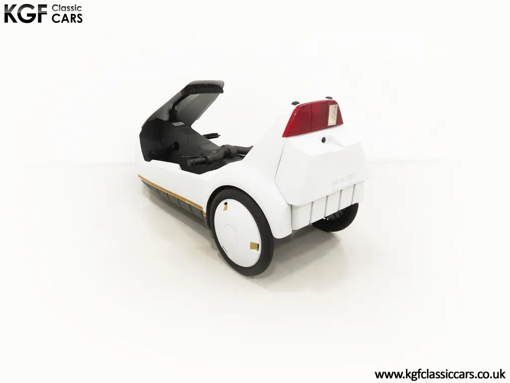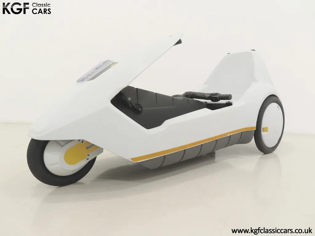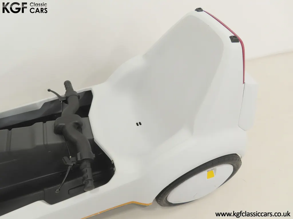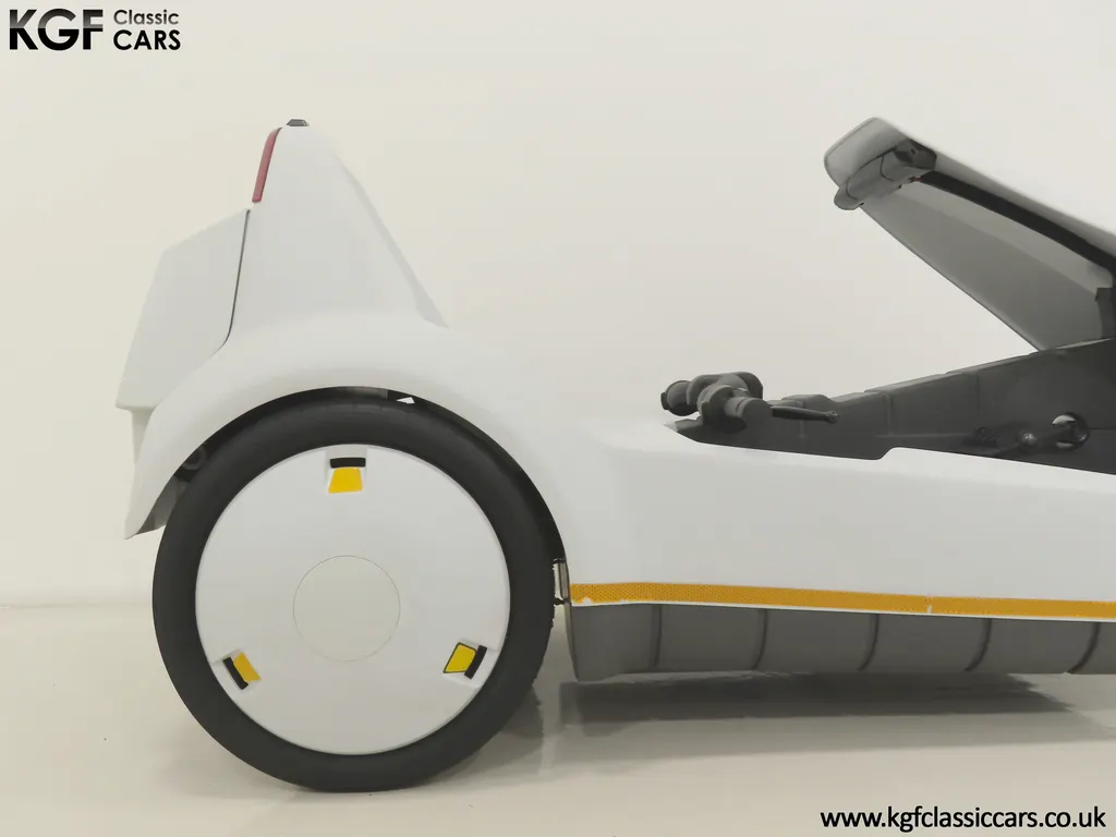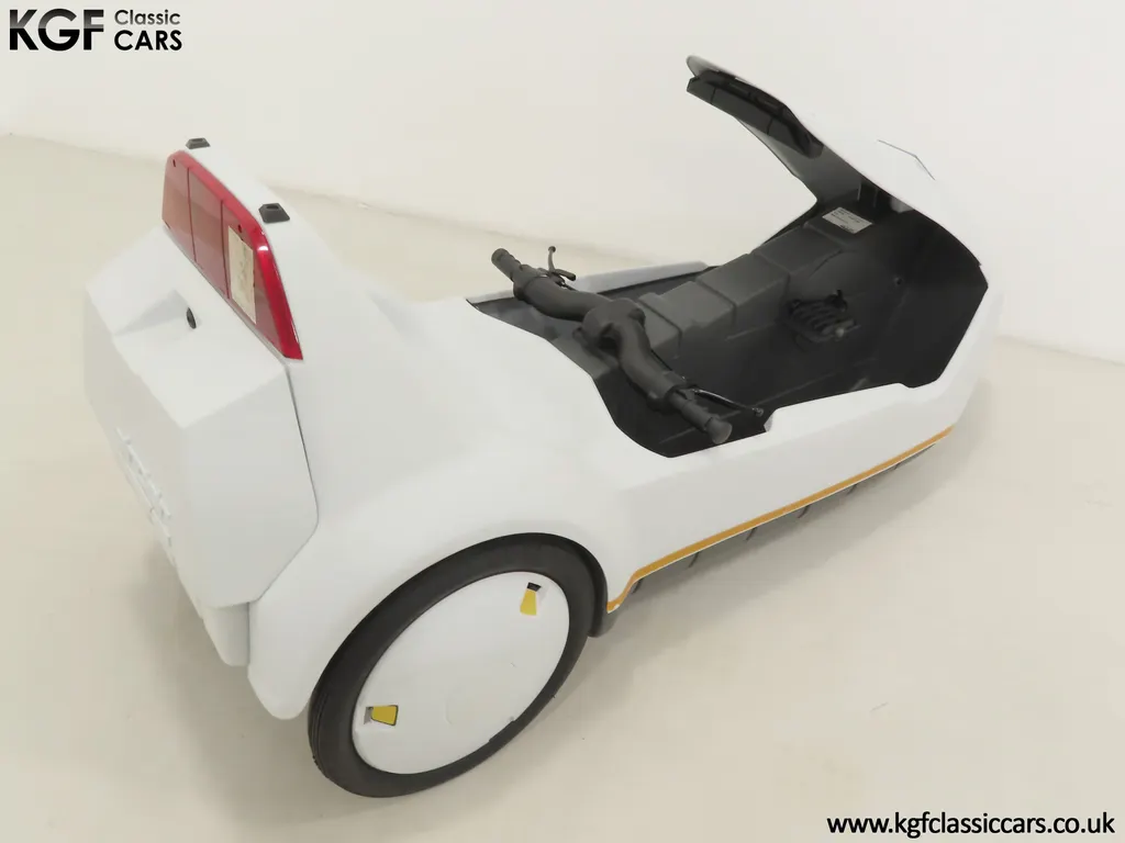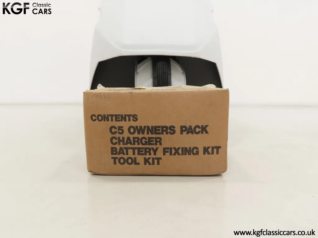 FOR SALE A revolutionary Sinclair C5 unused on display with boxed owner’s pack. MODEL HISTORY Launched on the 10th January 1985 this electric single seater was a completely new form of personal transport and a world first for Sir Clive Sinclair. Claims of 1000 miles for the price of a gallon of petrol, a range of up to 40 miles with an optional second battery and ability to be driven by anybody over 14 without a licence or road tax all for highly competitive £399 inc VAT, seamed enticing. A special launch show at Alexandra Pavilion on the weekend of the 12-13th January 1985 was poorly timed with cold wet British weather highlighting its limitations of a battery that ran down quickly, a maximum speed of only 15 miles per hour and lack of weather proofing. Combined with safety concerns of being dwarfed by vehicles on the road, poor reviews followed and within three months of the launch, production had been slashed by 90%. Sales never picked up despite Sinclair's optimistic forecasts and production ceased by the end of 1985. Out of 14,000 C5s made, only 5,000 were sold before its manufacturer, Sinclair Vehicles, went into receivership. Thousands of unsold C5s were purchased by investors and sold for hugely inflated prices, as much as £6,000. Enthusiasts have established owner’s clubs and newer batteries have now extended the range. No matter if you think of the C5 as a curious oddity and national flop or a serious alternative in personal transport, one thing is for sure, they are great fun and a cult classic! EQUIPMENT Aerodynamic injection moulded polypropylene body, specially coated steel backbone chassis designed by Lotus Cars, lamps, padded steering bar, all-round reflectors, key operated ignition switch, LED microprocessor display units, built-in boot, power activated push switch, powerful front and rear brakes, range and performance improving pedals. Boxed Owners Pack containing: Charger, battery fixing kit, tool kit. EXTERIOR Designed by Sinclair, styled by Guy Desbarats, (a graduate of the Royal College of Art), and developed and tested by Lotus Cars, the C5 could run at the speed of an Olympic sprinter, or so claimed the press release! The distinctive and smartly styled polypropylene body is in remarkable condition having never been ridden in 40 years! All plastic lamp lens covers are immaculate with the rear unit still having the quality assurance inspection sticker attached! The seating area is virtually unmarked with the serial number sticker still attached to the frame. The high-intensity reflective tape produced by 3M has come unstuck in small areas but a replacement OEM roll is included. The lockable white boot area, (only found on later models), is clean with the Hoover service information sticker still attached and the underside is beautifully preserved. MOTOR & TRANSMISSION The C5’s 250W 12v motor is one of the few non-British components, supplied by the Italian firm, Ploymotor, a subsidiary of Philips. Specifically designed and lightweight, the maximum power-assisted speed is 15 mph. The drive to the Torrington made tubular step-swaged rear axle is taken through an epicyclic reduction gearbox which incorporates glass reinforced nylon gears. Drive transfer is by a toothed belt to one wheel. This example has never been ridden and is being sold for display purposes only. WHEELS, TYRES & BRAKES The wheels were specially designed for the Sinclair C5, moulded from glass-reinforced nylon. The front is 12.5-inch diameter and the rears 16-inch shod in correct Sinclair rubber tyres. Powerful front and rear brakes are operated by cycle type brake levers engineered to avoid locking of the front to ensure straight-line braking in all conditions. HISTORY FILE Such a controversial vehicle that it has now become a cult classic! This particular example was built in October 1985 at Hoover’s Merthyr Tydfil facility towards the end of C5 production. It was owned by the late Charles Snarski, a well-known expert in C5 circles and resided in his personal collection before being purchased by one further keeper in 2019. Only ever on display, it remains unused to this day still with its boxed and unopened C5 owners pack! Supplied with two keys and the key code tag along with wonderful period artifacts such as the Sinclair Vehicles Press Information bulletin, a copy of the January 1985 C5 driver Souvenir Edition magazine and the January 19th Motor Magazine where the C5 is road tested with the headline, ELECTRIC SHOCKER! A new power in personal transport and a true 1980’s icon, instantly recognisable and guaranteed to raise a smile whenever it is seen!