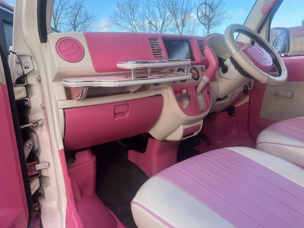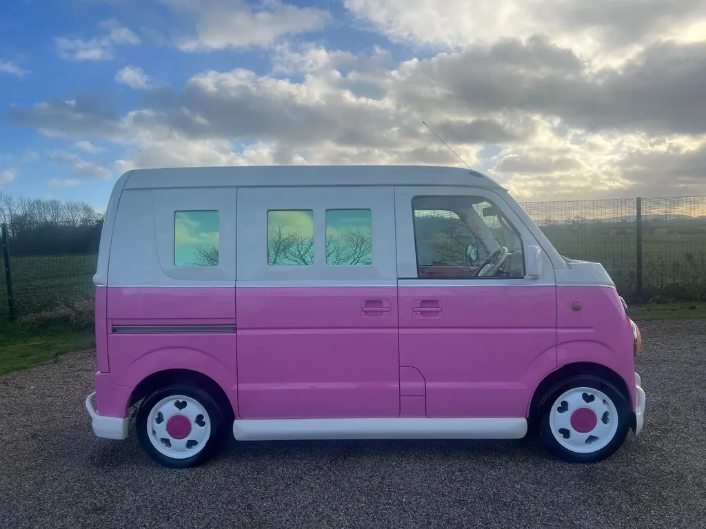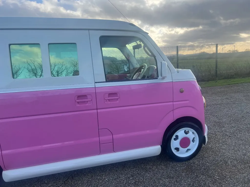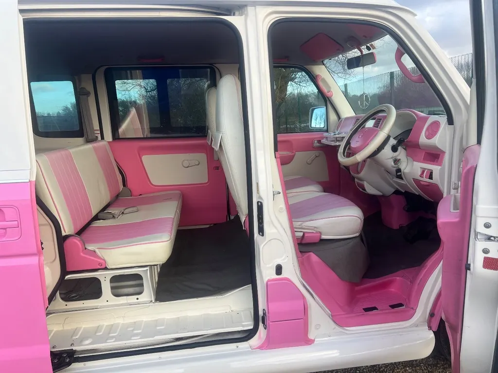 Stock Number ( 311857R ) In UK Stock Registered and ready to go. This vehicle has £1000's of customer extras including vintage style front and rear panels , towel rail front and rear bumpers , middles and side window panels ,very very rare love heart alloy wheels , custom seat covers and pink paintwork inside and out , CD / DVD / SD/USB with memory jukebox for your cds and this unit will play UK DVD's , we can also fit a smart intelligent screen with dashcam and rear camera this unit will allow you to mirror anything from your phone , including calls , apps and sat nav ( as seen in the pictures ) , please ask for the price on this if you require one , there is a imitation key toy winder on the rear ( can be removed ) .We have the original handbook and service book , this vehicle has been very well cared for and was a grade 4B . This is also ULEZ Compliant. These vehicles are ideal for coffee vans along with being excellent for business promotions and advertising , Nursery transport and for little people , It would make an excellent promotional vehicle ... The insurance is very low and MPG is very good as it is only 660cc , Cheap Road tax ................. , A real head turner and show car This vehicle is a dry and fresh import, Meaning little or no rust due to the climate and that the Japanese do not use salt on there roads. we would accept a down payment of intent to secure this vehicle which will reduce the balance to pay on collection or delivery. All of our vehicles are imported direct from their country by us personally, They are all handpicked and we try to find that special, unique or limited number of produced vehicles, All vehicles are Pre Inspected in Japan and an Export Certificate is always available for viewing, This will show previous mileages in Japan . The advertised prices includes all shipping & Import duties , UK Registration , UK number plates, UK MOT, Oil and filter service, Clear Waxoyl under sealant for protection against UK winters if requested (free of charge including materials), 3 Months UK nationwide warranty. All you need do is tax and insure your vehicle and we can also help with that if you ask . Also your vehicle will be valeted and detailed if any scrapes or dents are apparent when it arrives at our warehouse . With the vast number of people we have in Japan and access to 100'000's of cars we can also offer the service of sourcing , Inspecting and importing a vehicle of your choice, Email or call us with your requirements and we will start to look instantly for you, We take all the hassle and stress from the process and make the car ready to drive away, From being registered in Japan to Registered in The UK for you! Please always call or email before coming to view a vehicle as some of our stock may have a deposit taken, be at the port, On the vessel, In one of our storage yards in Japan or the UK, This way you will not arrive disappointed and we can make the vehicle available for viewing when you do arrive.