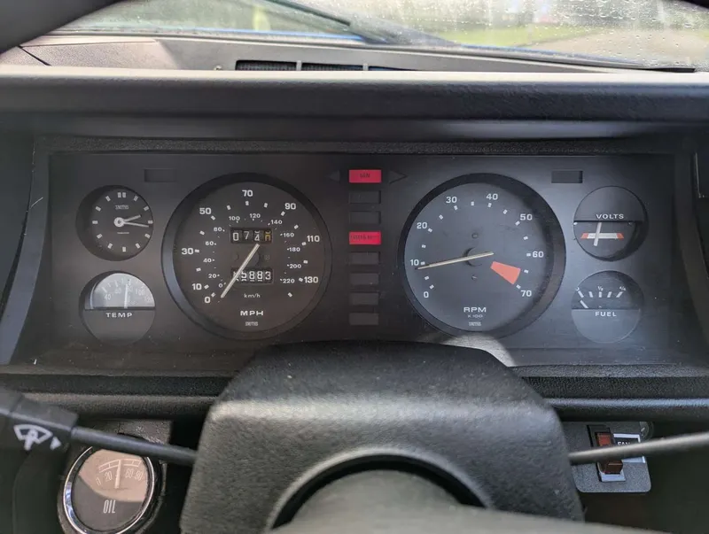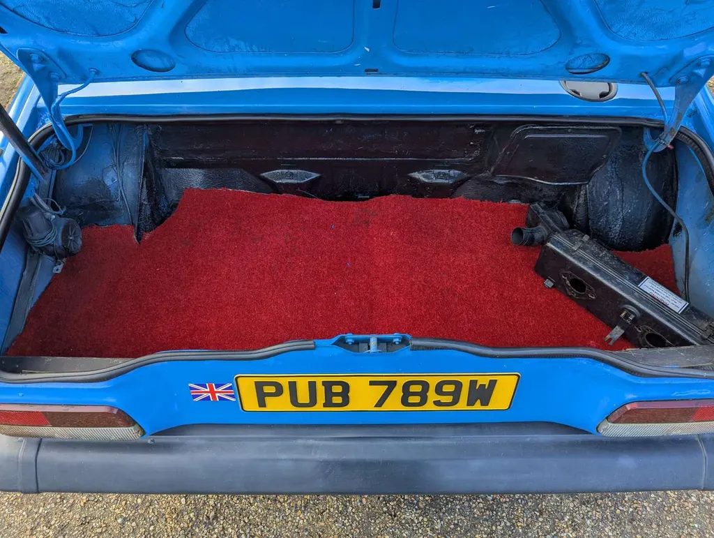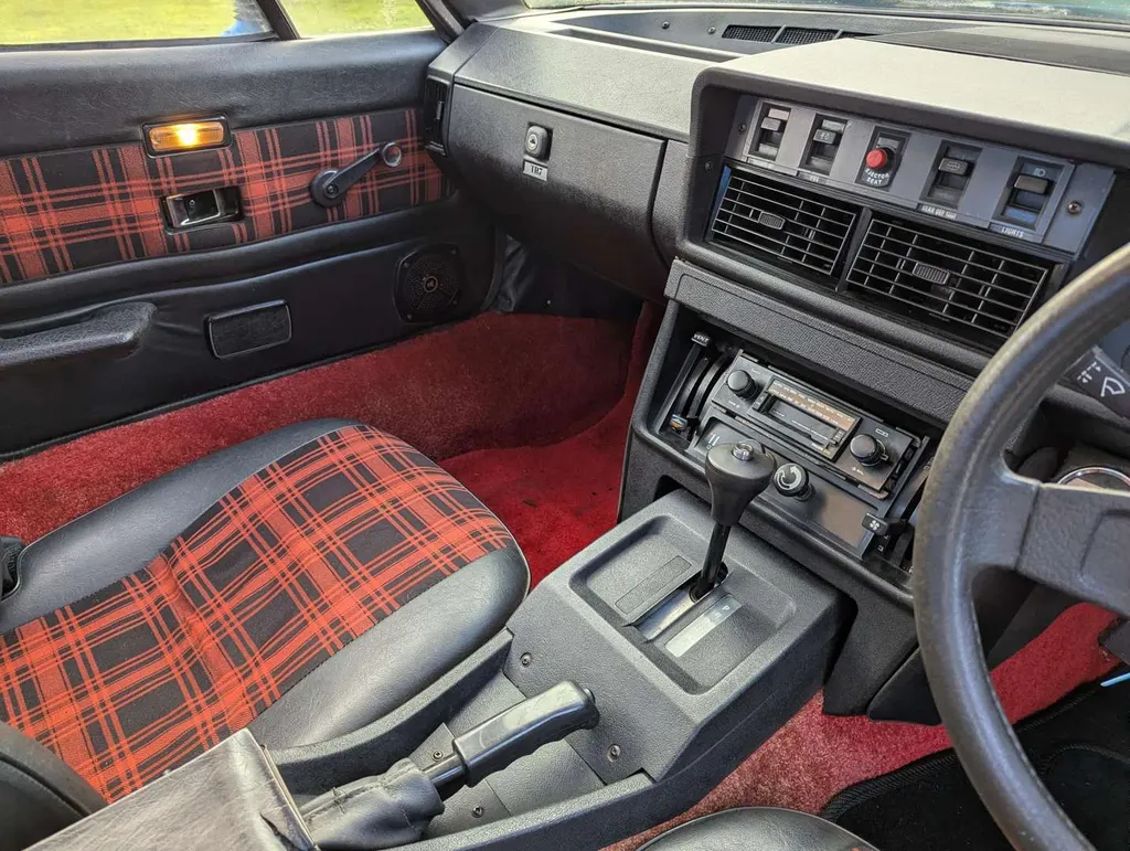 This Triumph TR7 is a rare automatic example in Pageant Blue with a red tartan interior, purchased by the vendor from one of our sales in 2024. He states that it “runs and drives well,” with 85,800 miles showing on the odometer. There have been only 3 registered keepers from new. The car has been fitted with an oil pressure gauge, electric fan and an ejector seat button – untested, but reportedly not operational! Although the MoT expired in 2018 and only a few receipts come with the car, we're told it has recently received an oil & filter change, new distributor cap and rotor arm, spark plugs, ignition timing checked and carbs balanced, fuel filter cleaned, diff oil replaced, new numberplates, wheel trims, decals for the boot and engine bay, new rocker cover gasket and new aftermarket air filters.The vendor advises that the headlights work but have to be raised/lowered manually, and the fuel gauge is not reading.The V5C is present, indicating 1st August 1980 as the date of first registration. Not specified