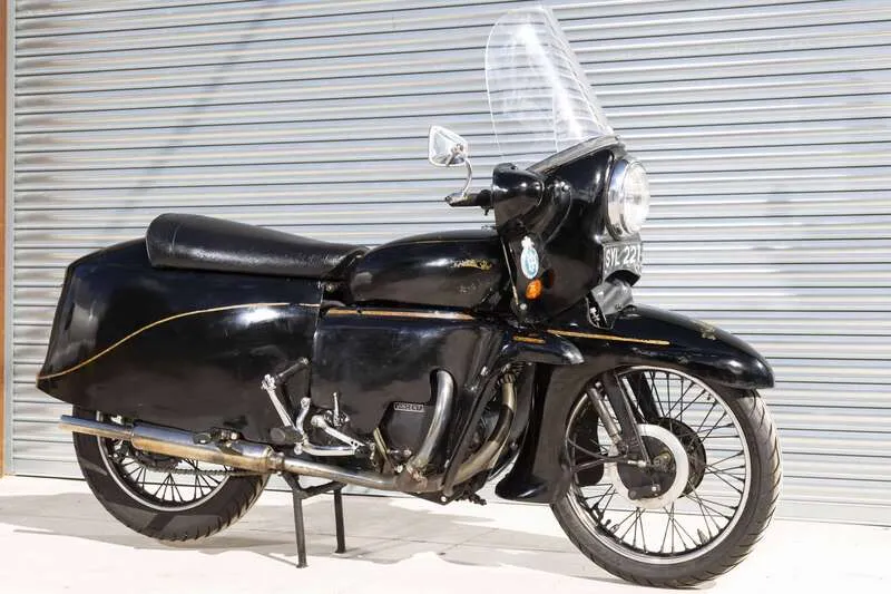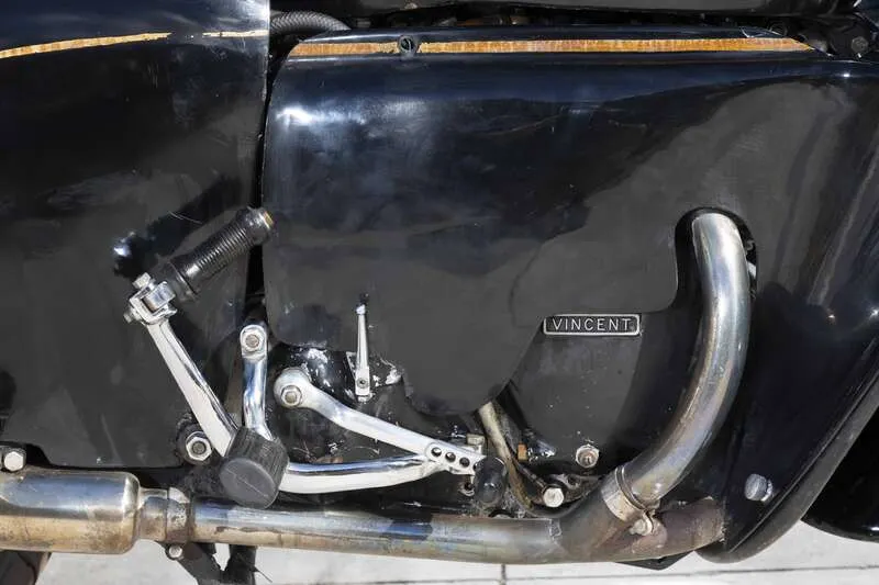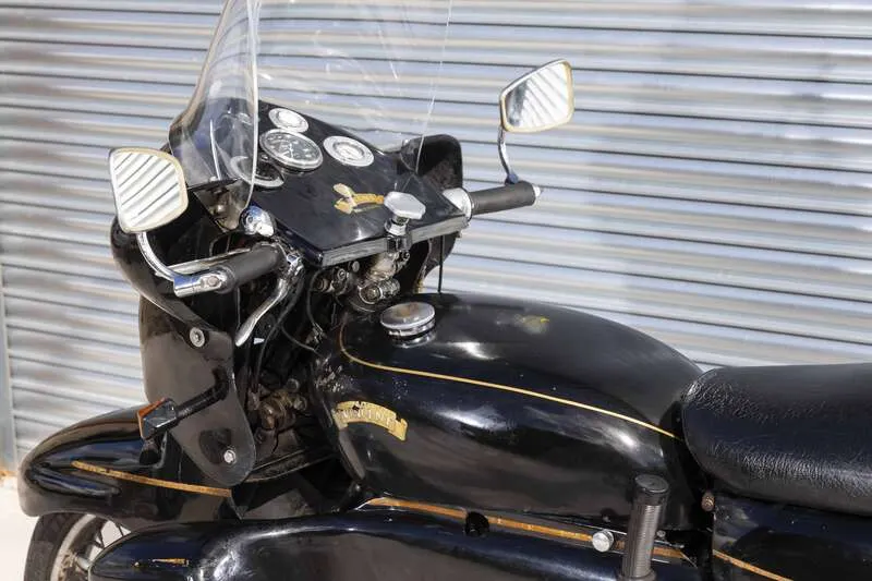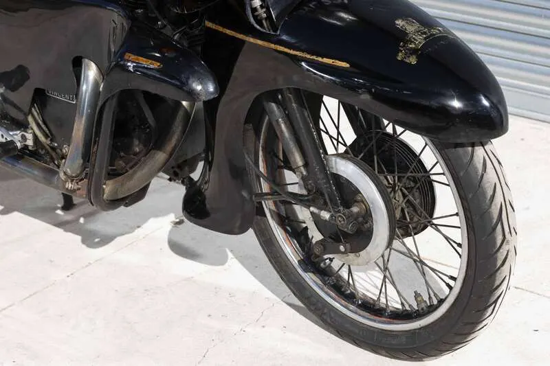 This lot will be auctioned via Iconic Auctioneers, The Iconic Motorcycle Sale at the NEC Classic Motor Show 2025 on Sunday the 9th of November, NEC, Birmingham, B40 1NT. Following on from the legendary Shadow, Phil Vincent wanted to produce a 'two-wheeled Bentley' so, in 1954, he developed and launched the Black Prince with all new aerodynamic bodywork clothing the traditional 998cc V-twin engine and suspension Only 132 were ever produced when production ended in December 1955 with the company's demise Often regarded as more a piece of art than a mere motorcycle and highly sought after today, it stands as both a technical milestone and a symbol of Vincent’s fearless pursuit of innovation This example is presumably one of the last to sell as it was first registered on 10/07/1956 to Conway Motors Ltd of Shepherds Bush, London The bike has been in Jim Richardson's care since 2013 and was toured by Jim extensively up until he stopped using it in 2023 Supplied with its current V5C (Historic) and on its original (transferable) registration number with a large folder of paperwork, including the original 'buff' logbook, old MOTs & V5C, tax discs, period service notes, invoices etc. A rare opportunity to acquire one of the most unusual and desirable Vincents ever built Correct front and rear frame, engine and crankcase pairing numbers
